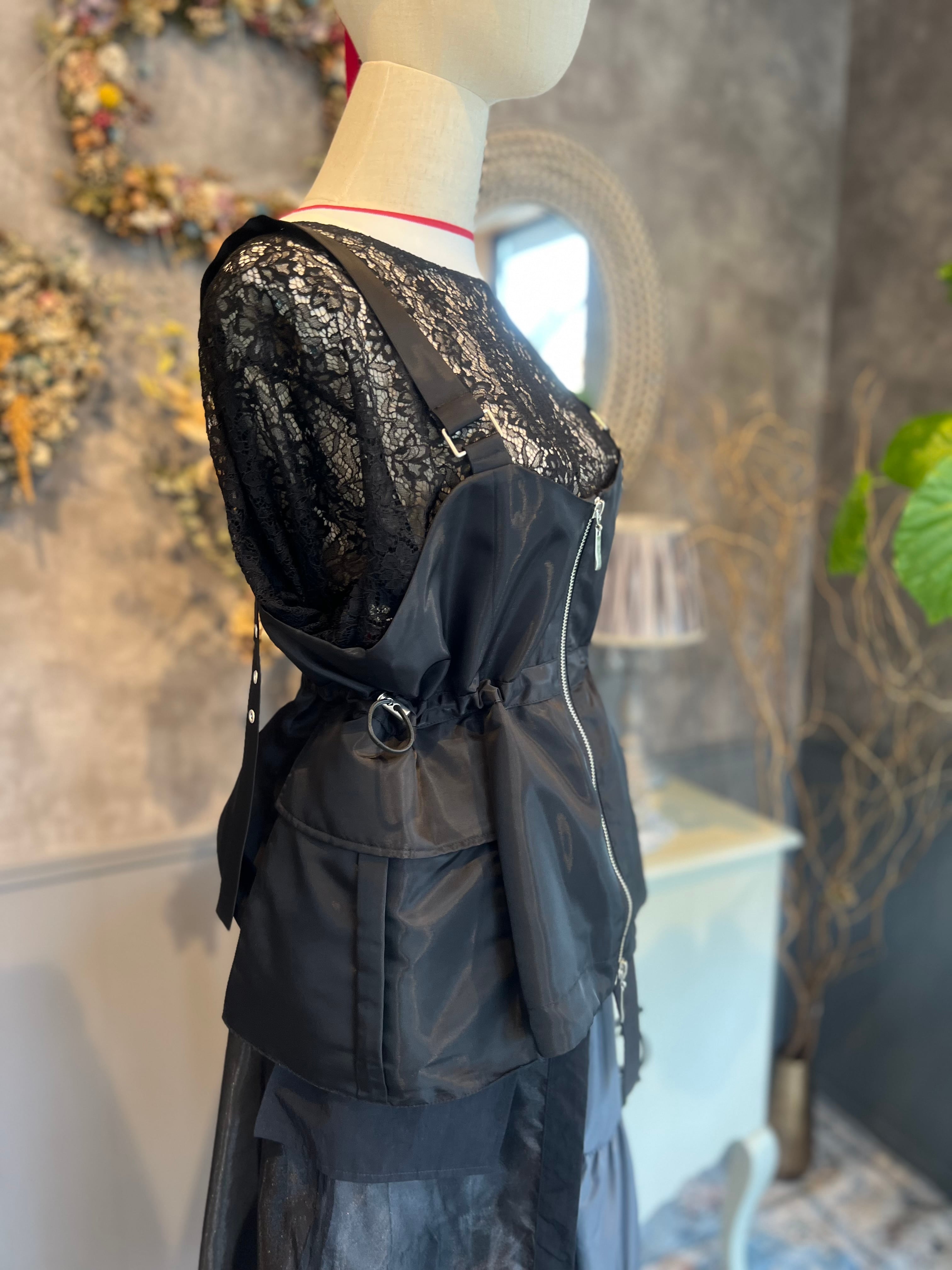 MICALLE MICALLE フロントジップ×ドロストデザイン ビスチェ BLACK