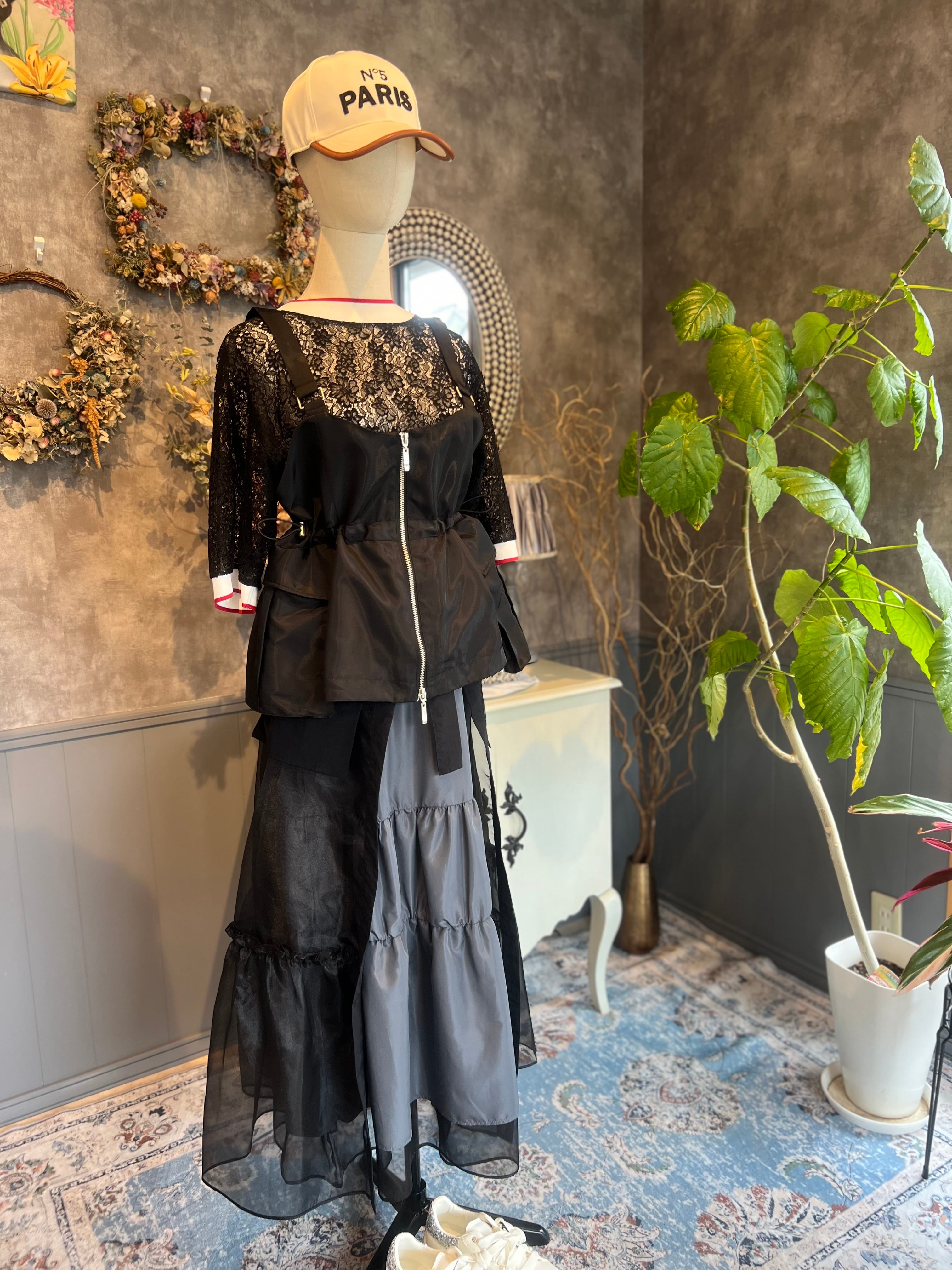 ミリタリーテイストを取り入れたMICALLE MICALLEのビスチェは、洗練されたデザインでスタイルを格上げします。