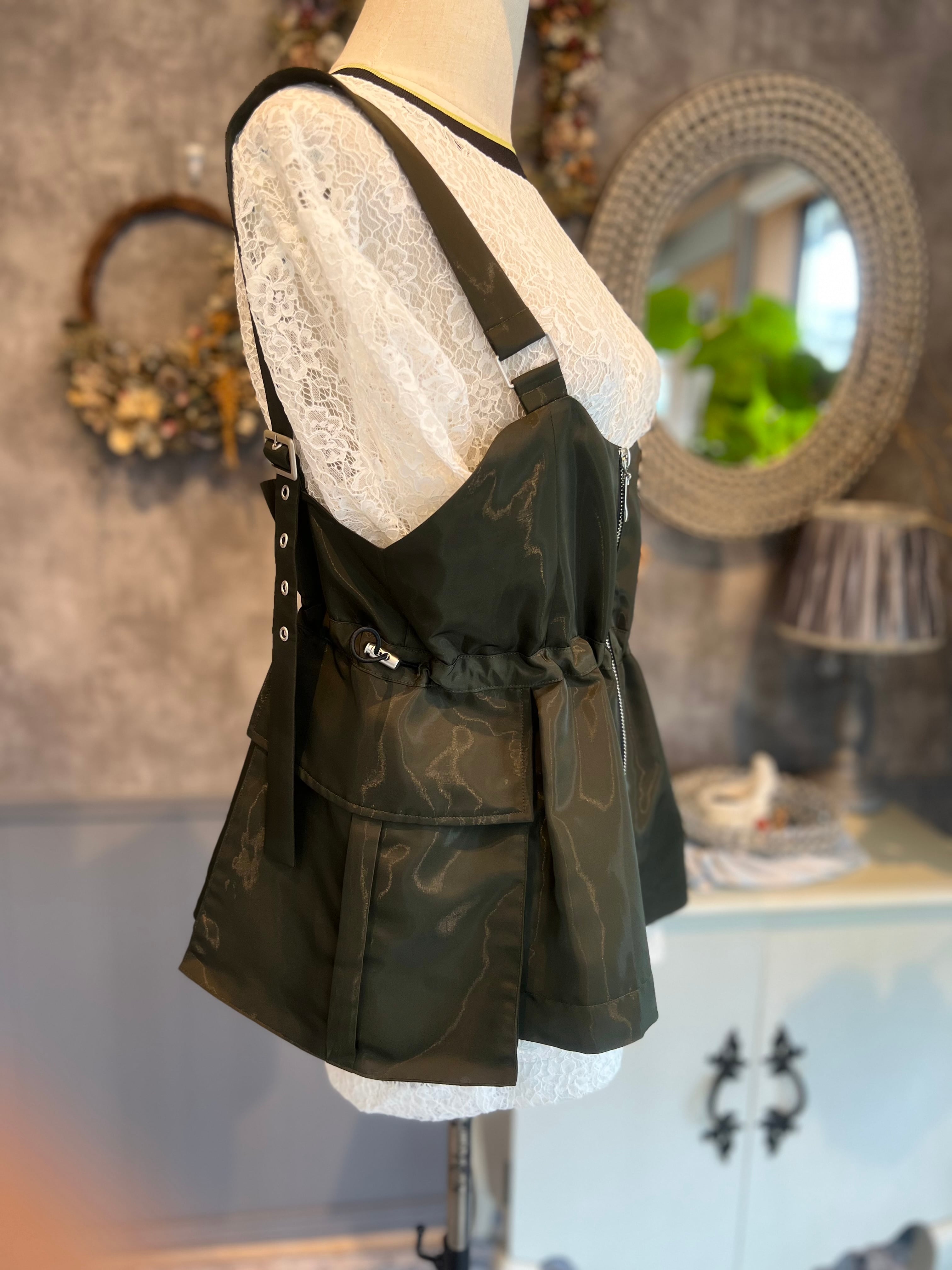 MICALLE MICALLE フロントジップ×ドロストデザイン ビスチェ khaki