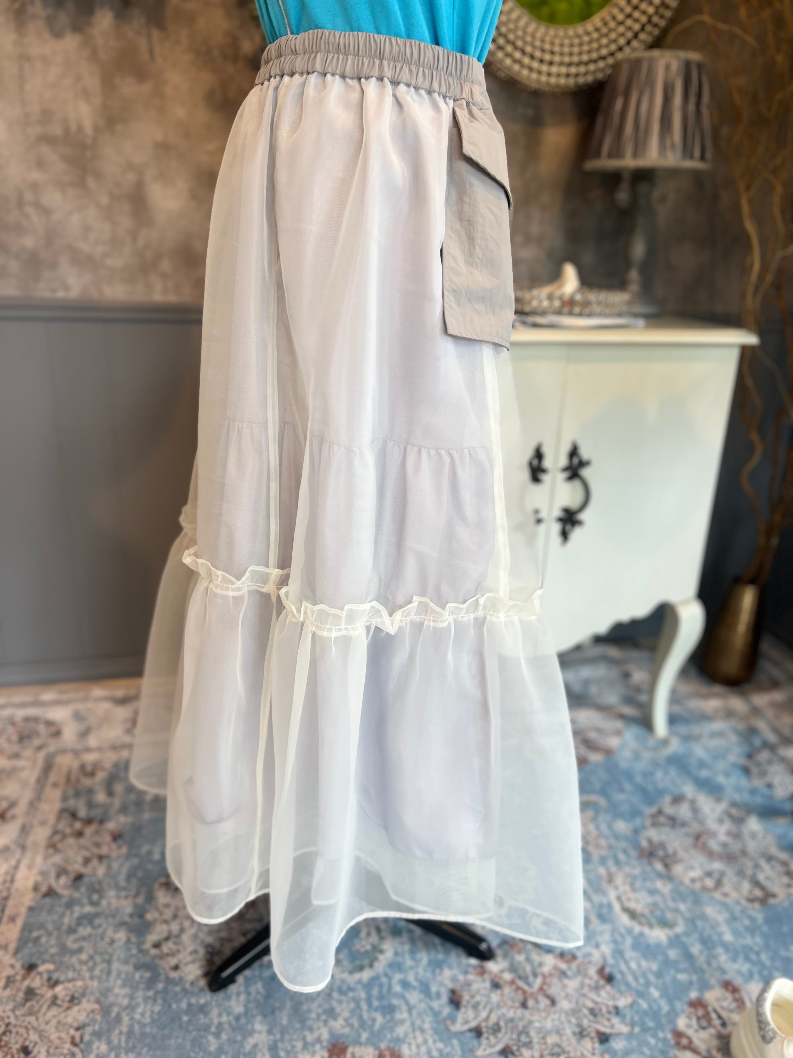 MICALLE MICALLE TULLE LAYERED LONG SKIRT gray