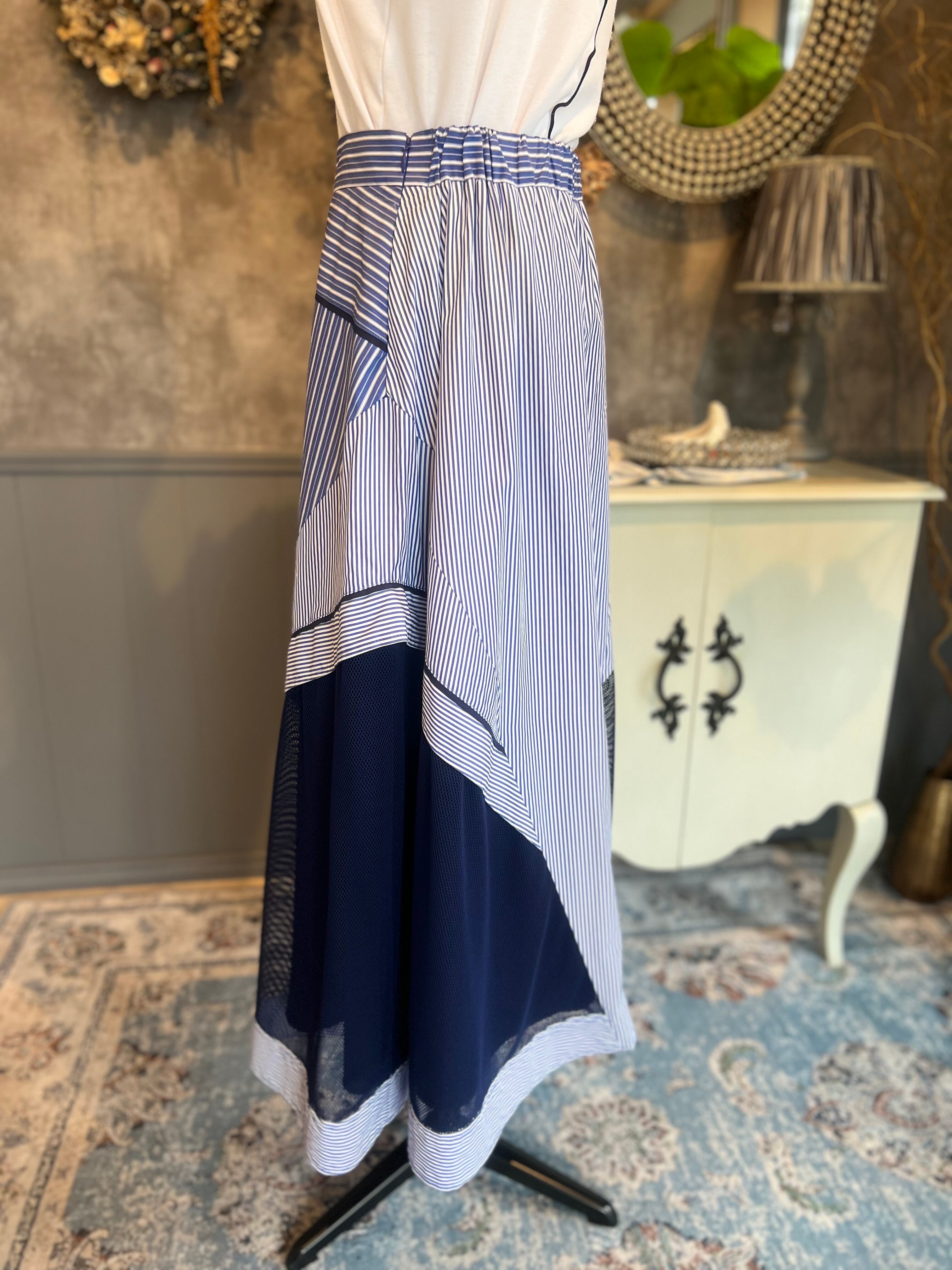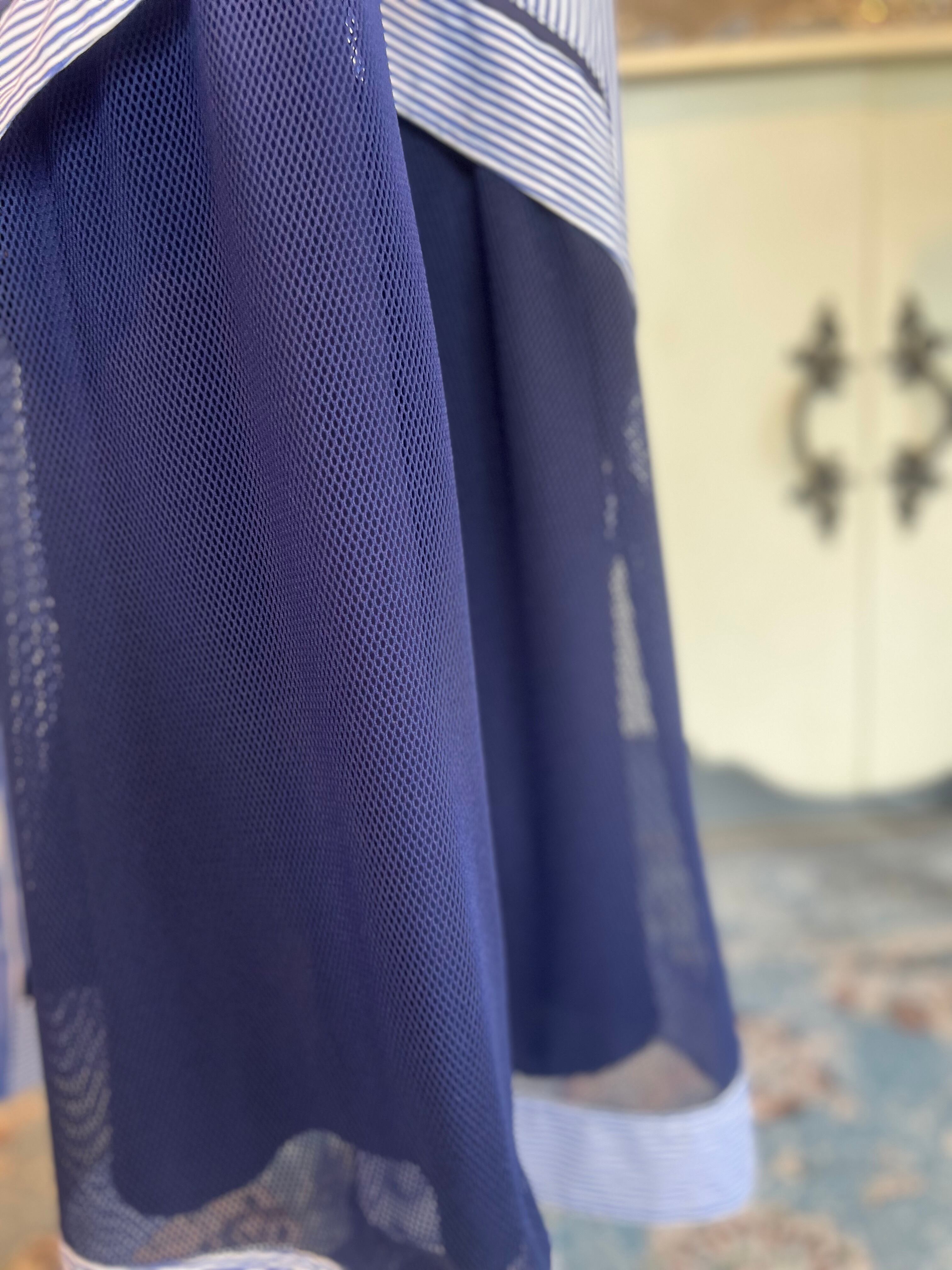 MICALLE MICALLE ストライプメッシュドッキングスカート Blue