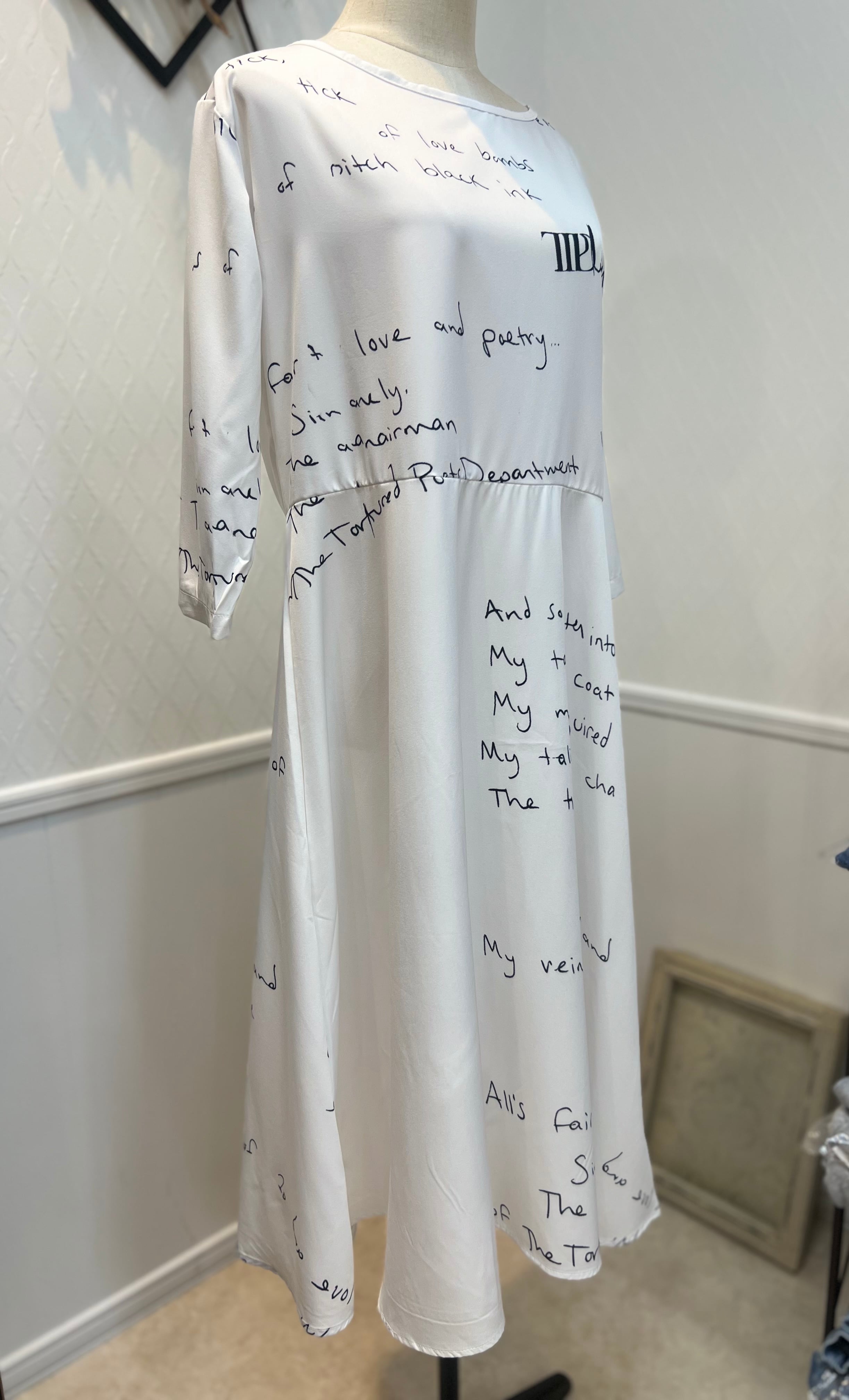 軽やかな素材感が魅力の英字プリントワンピースです。