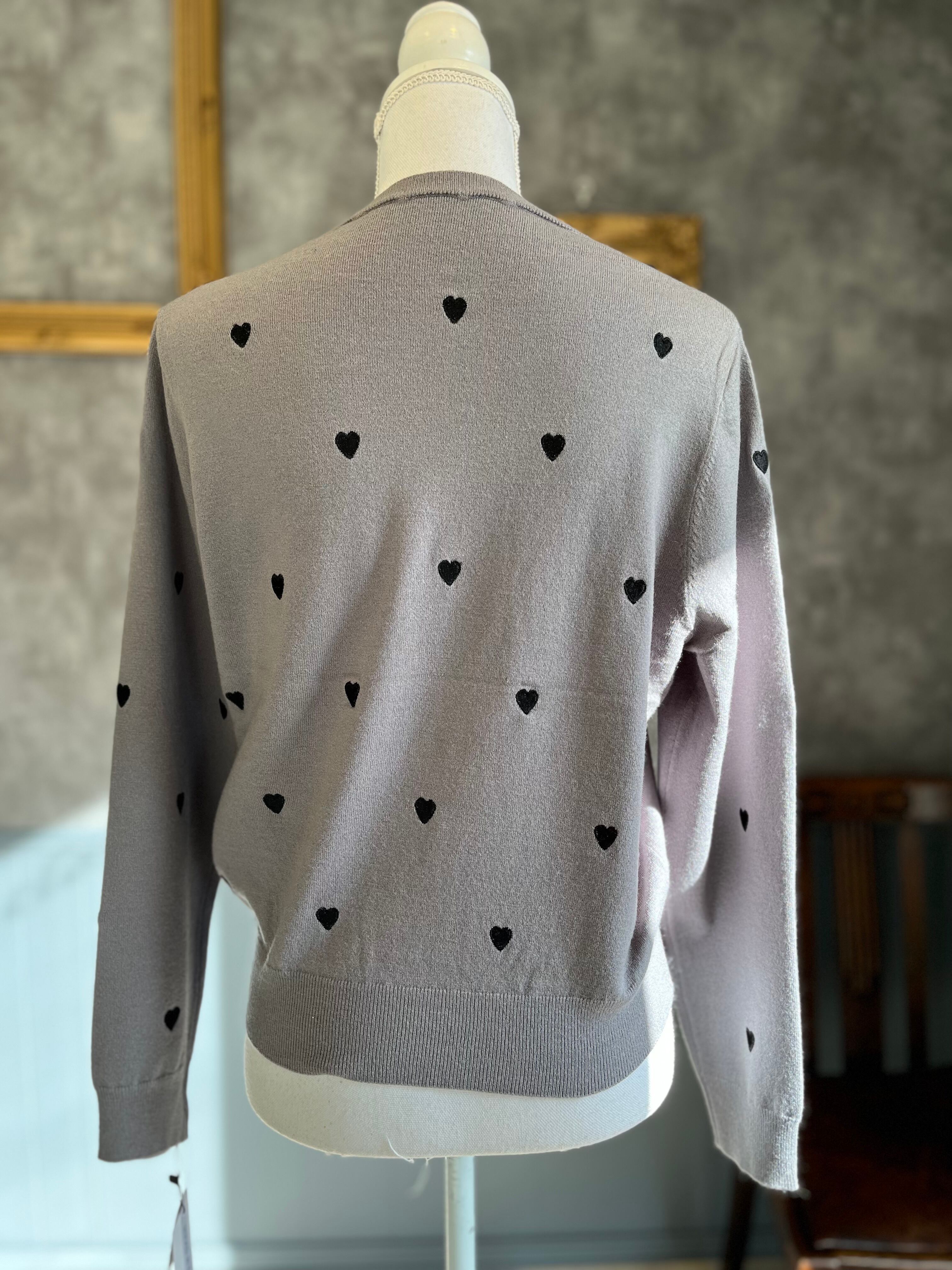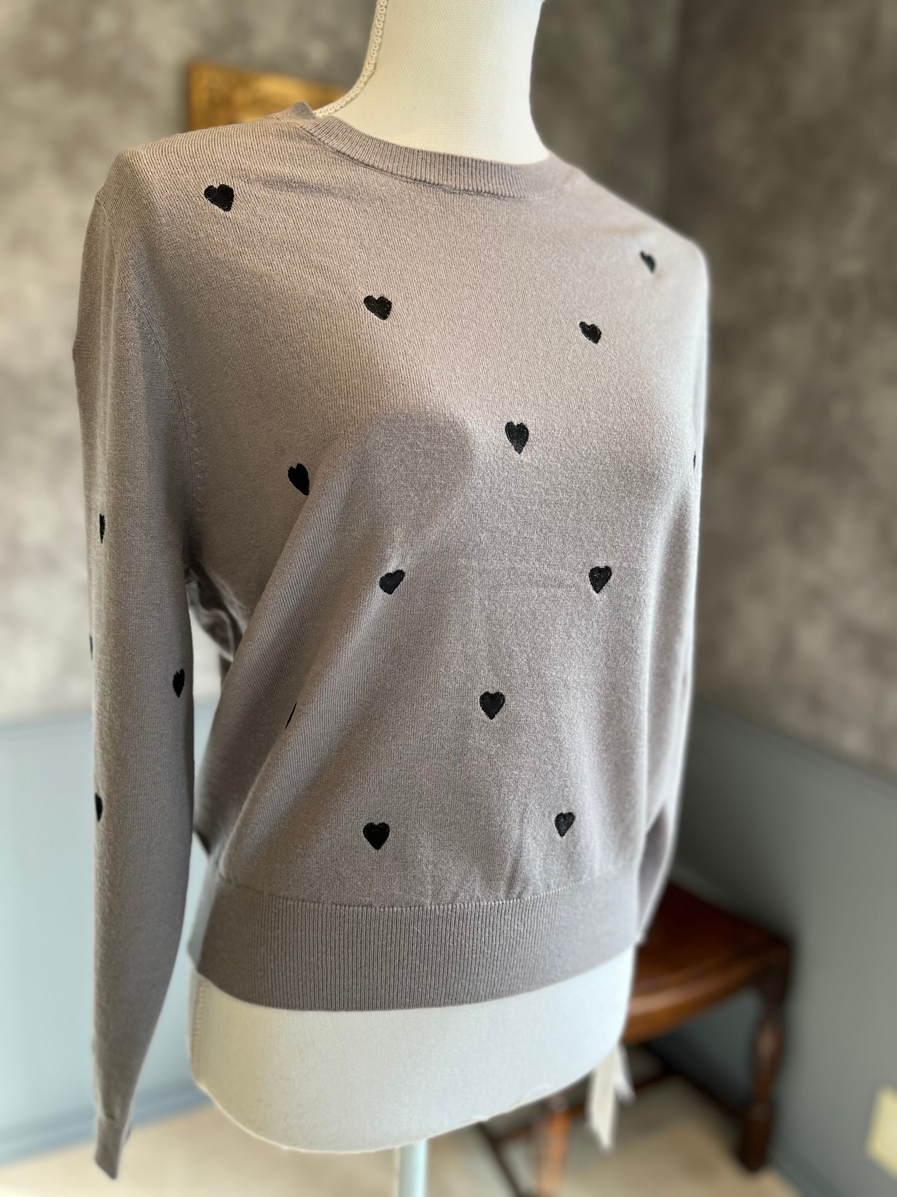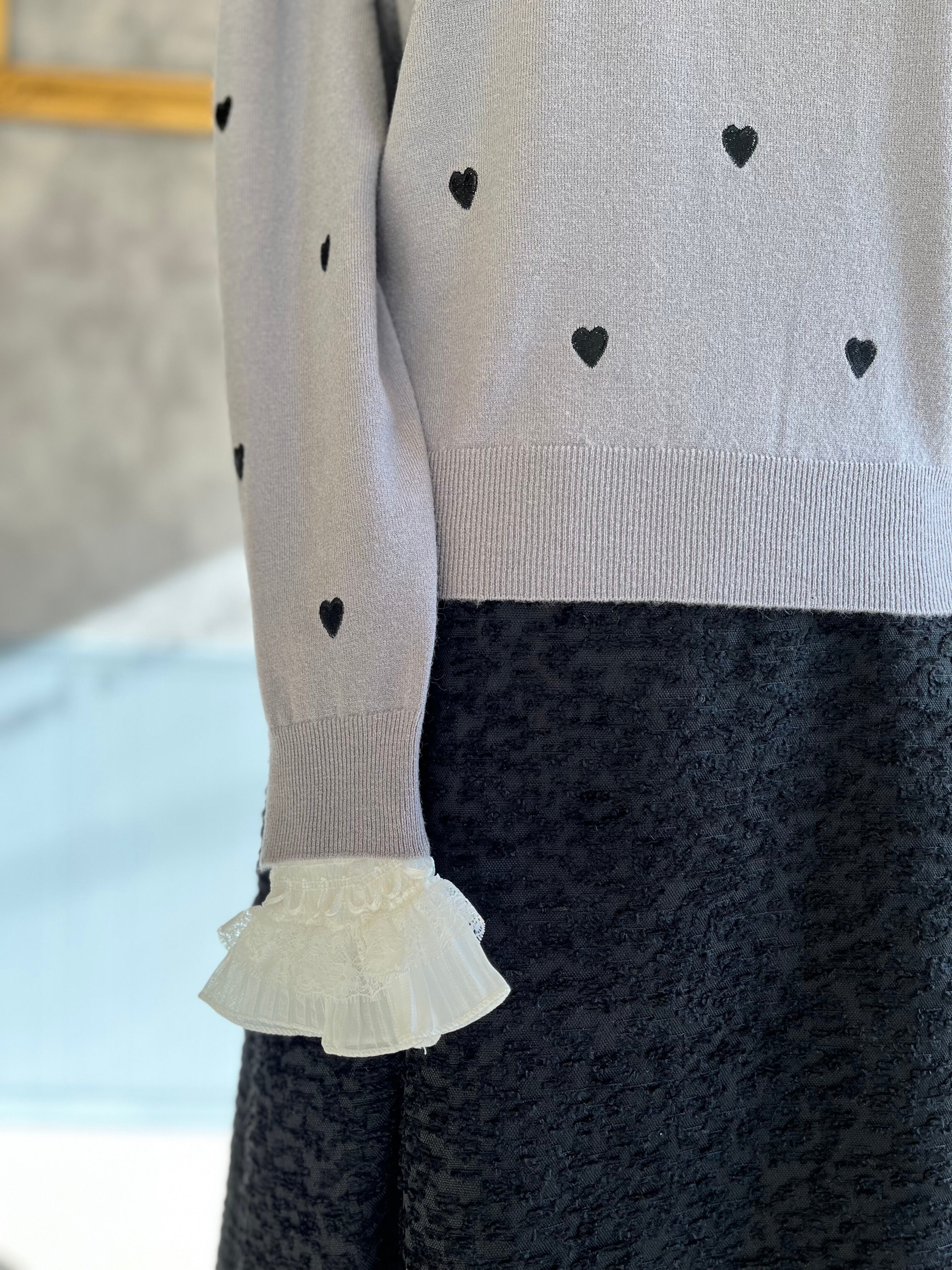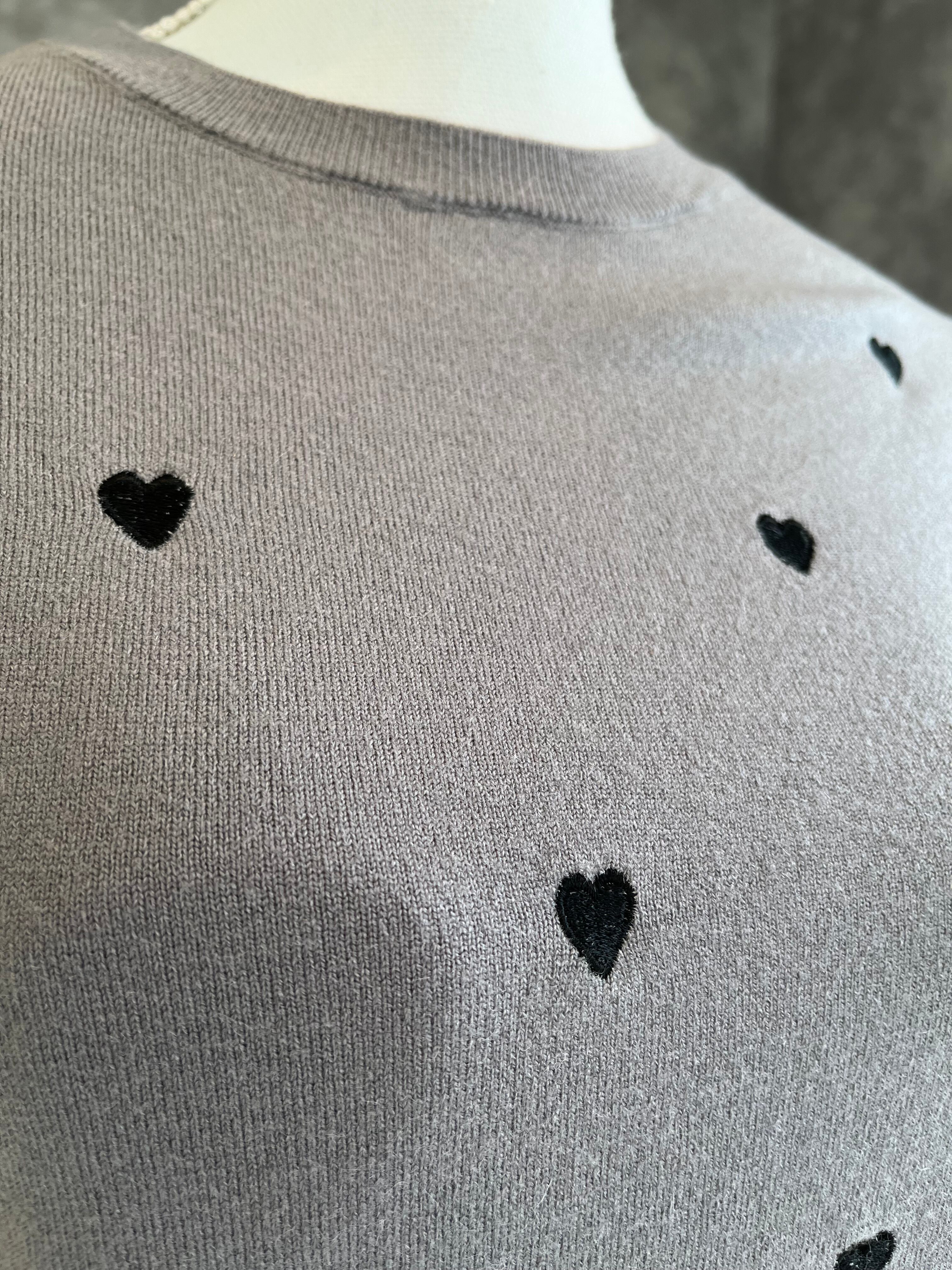 配色のハート刺繍が可愛らしく、一枚コーデに取り入れるだけで