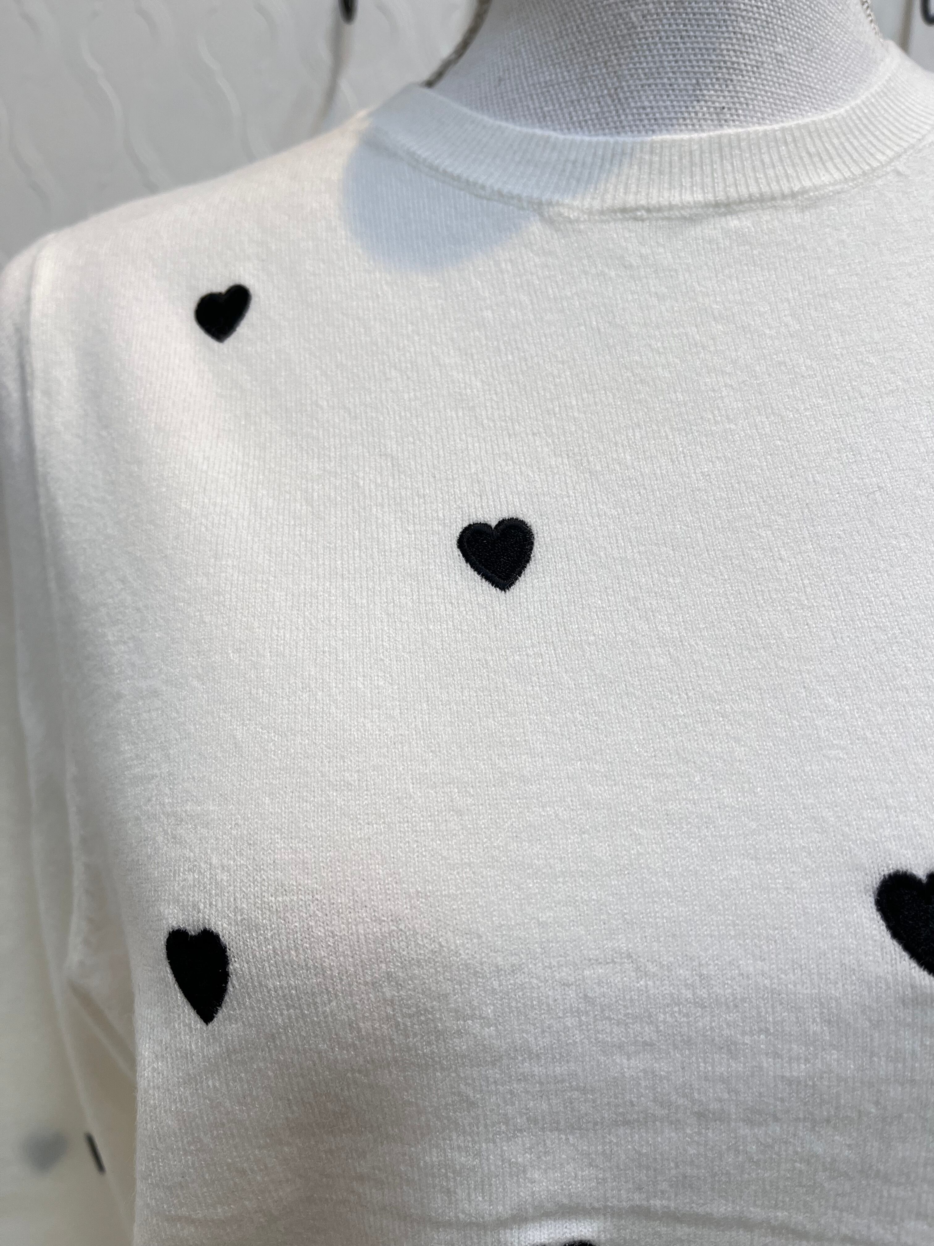 ハート刺繍crew neck knit white