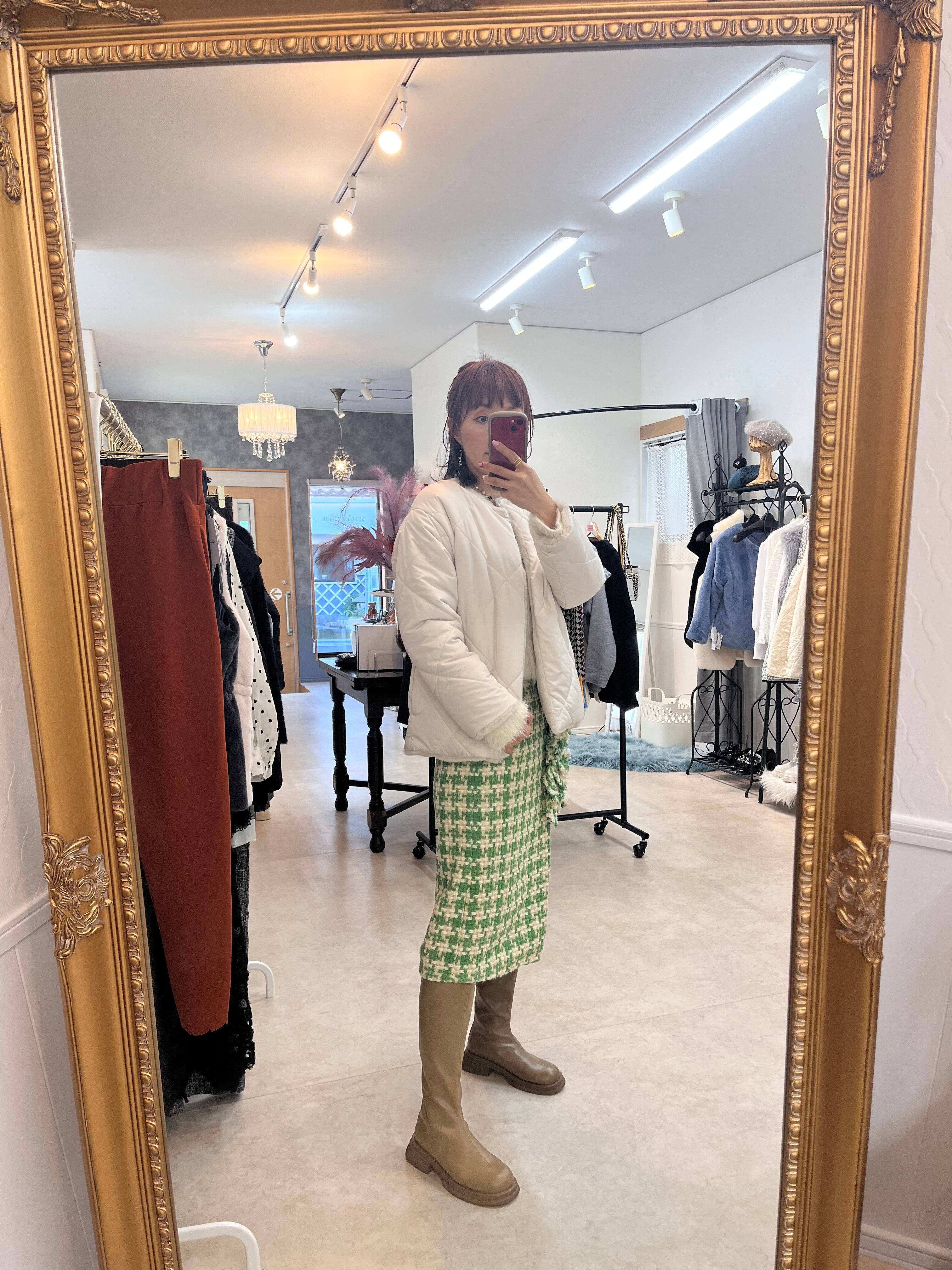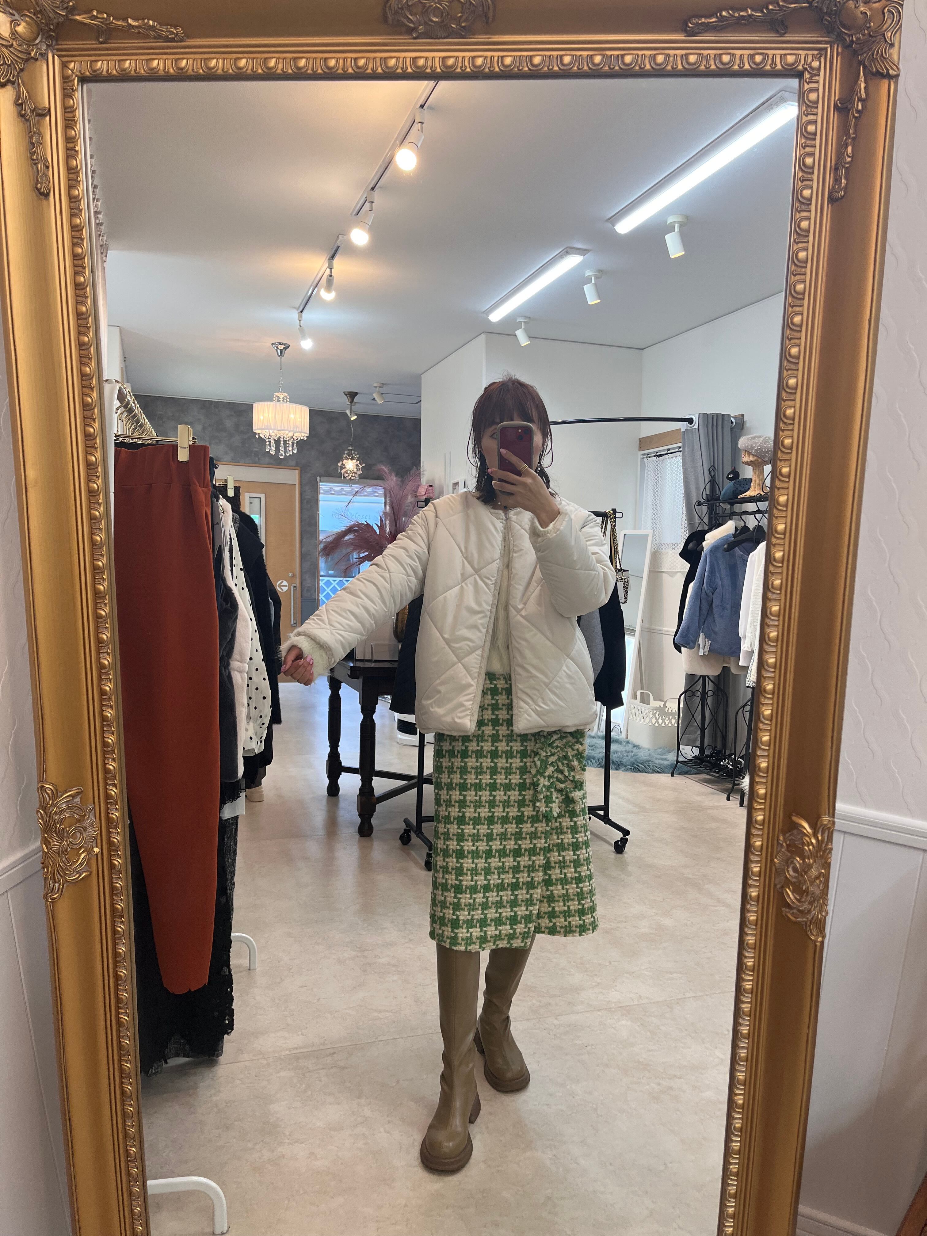 上からでも、また寒くなるともちろんニットの上からでも大人の女性の着こなしを楽しめます。