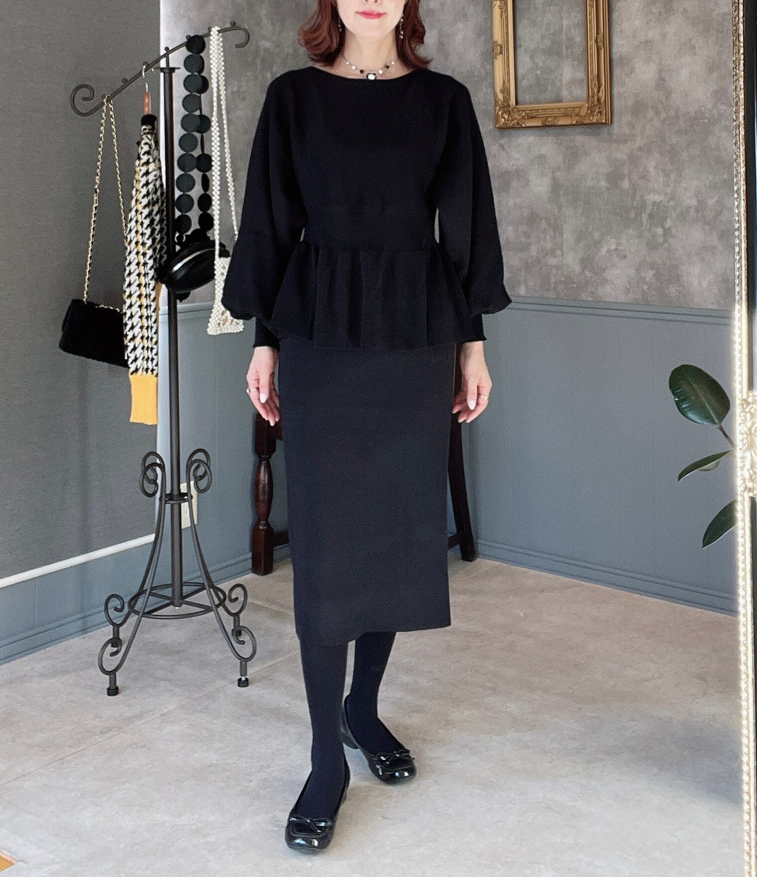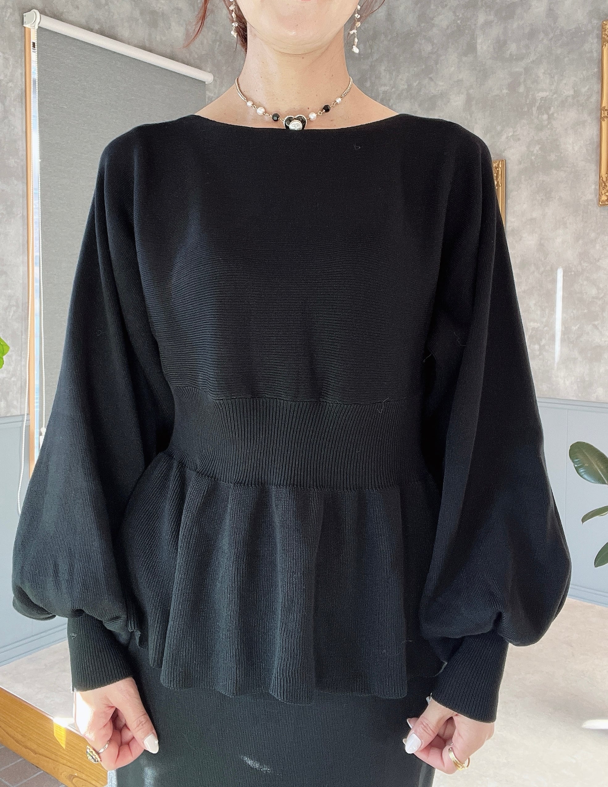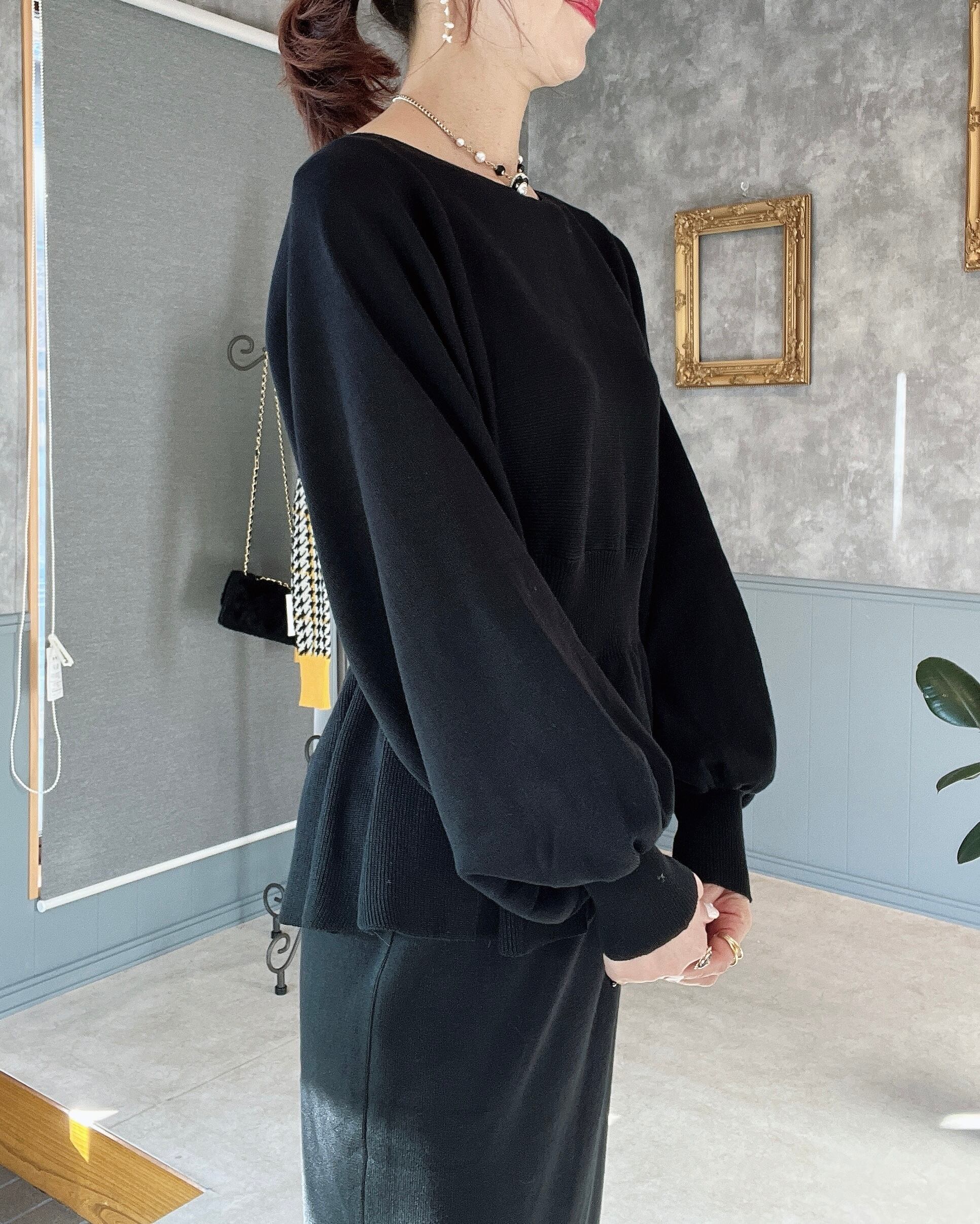ペプラムトップスの袖はふんわり、ウエストをシェイプすることで、スタイルアップします。