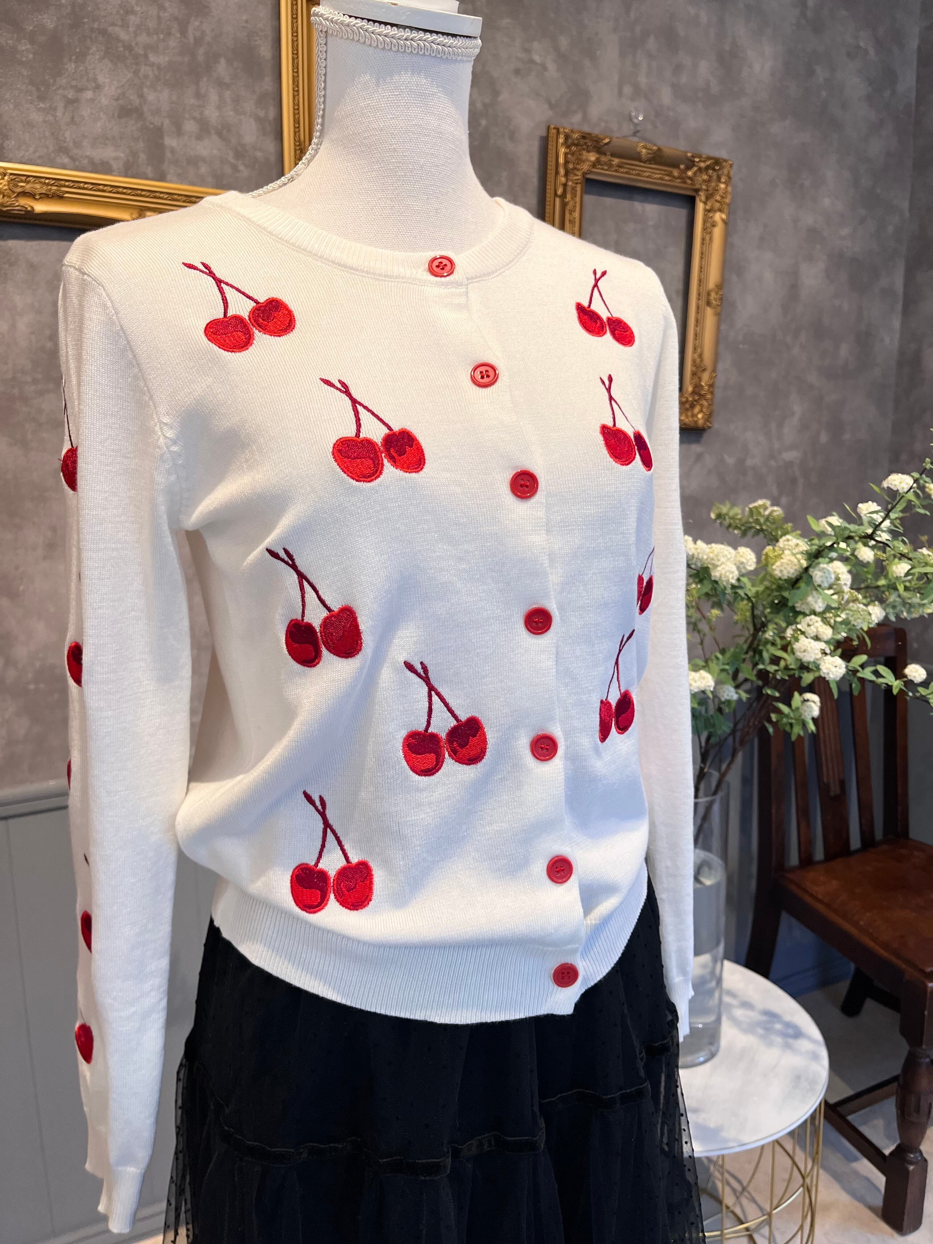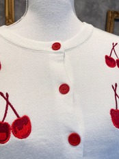 白ベースに赤の刺繍が爽やかで春らしいカーディガンです。