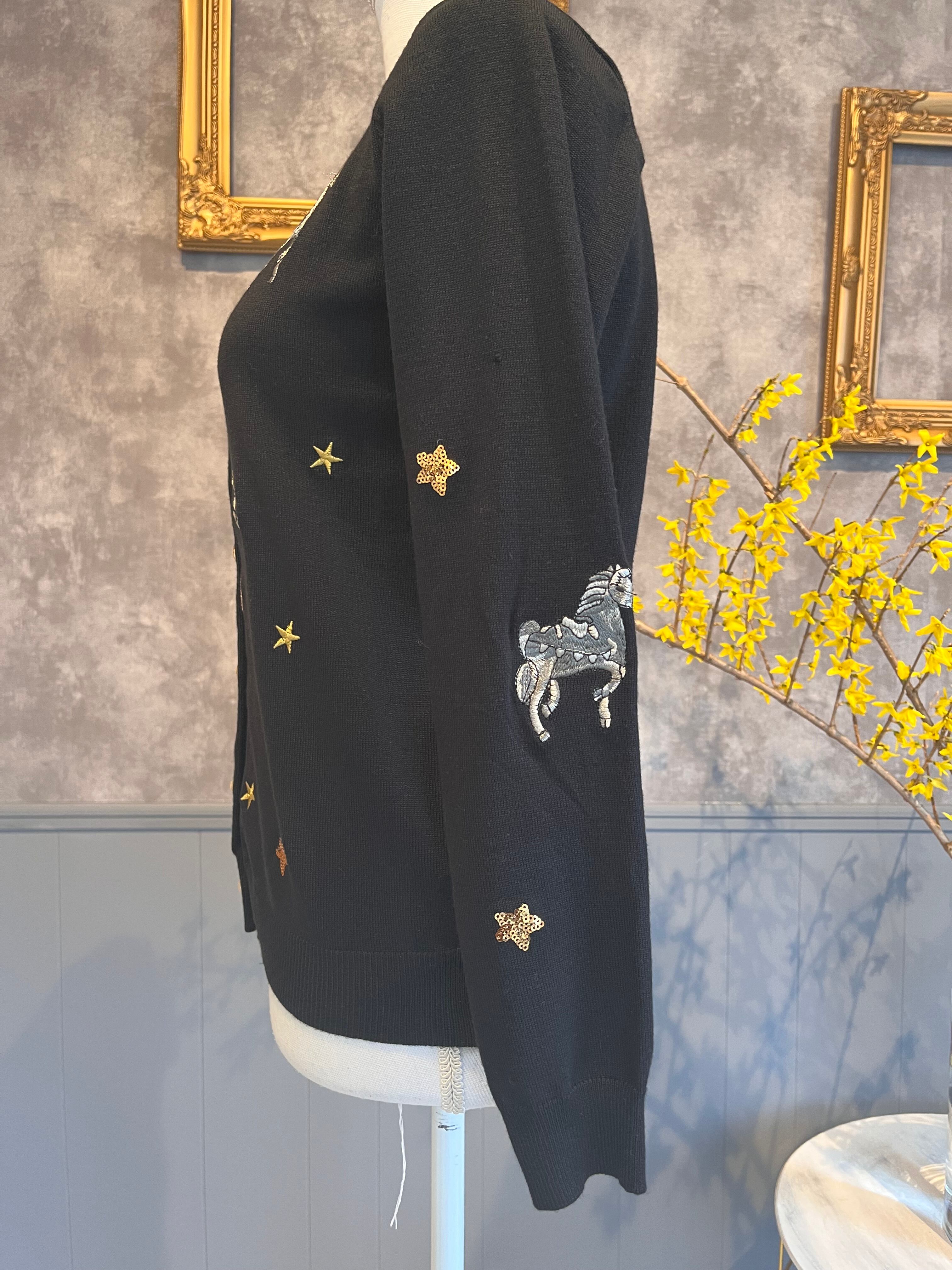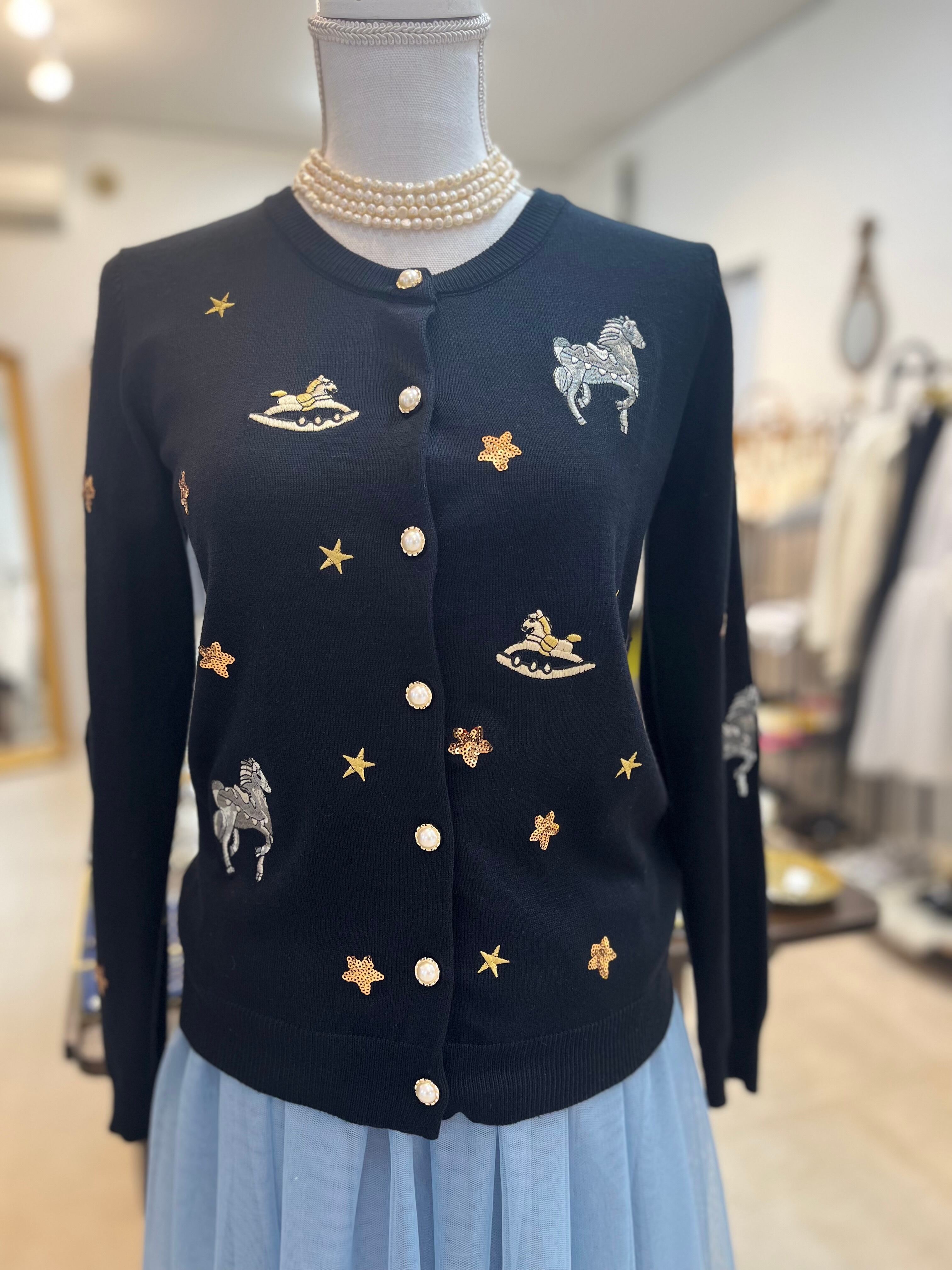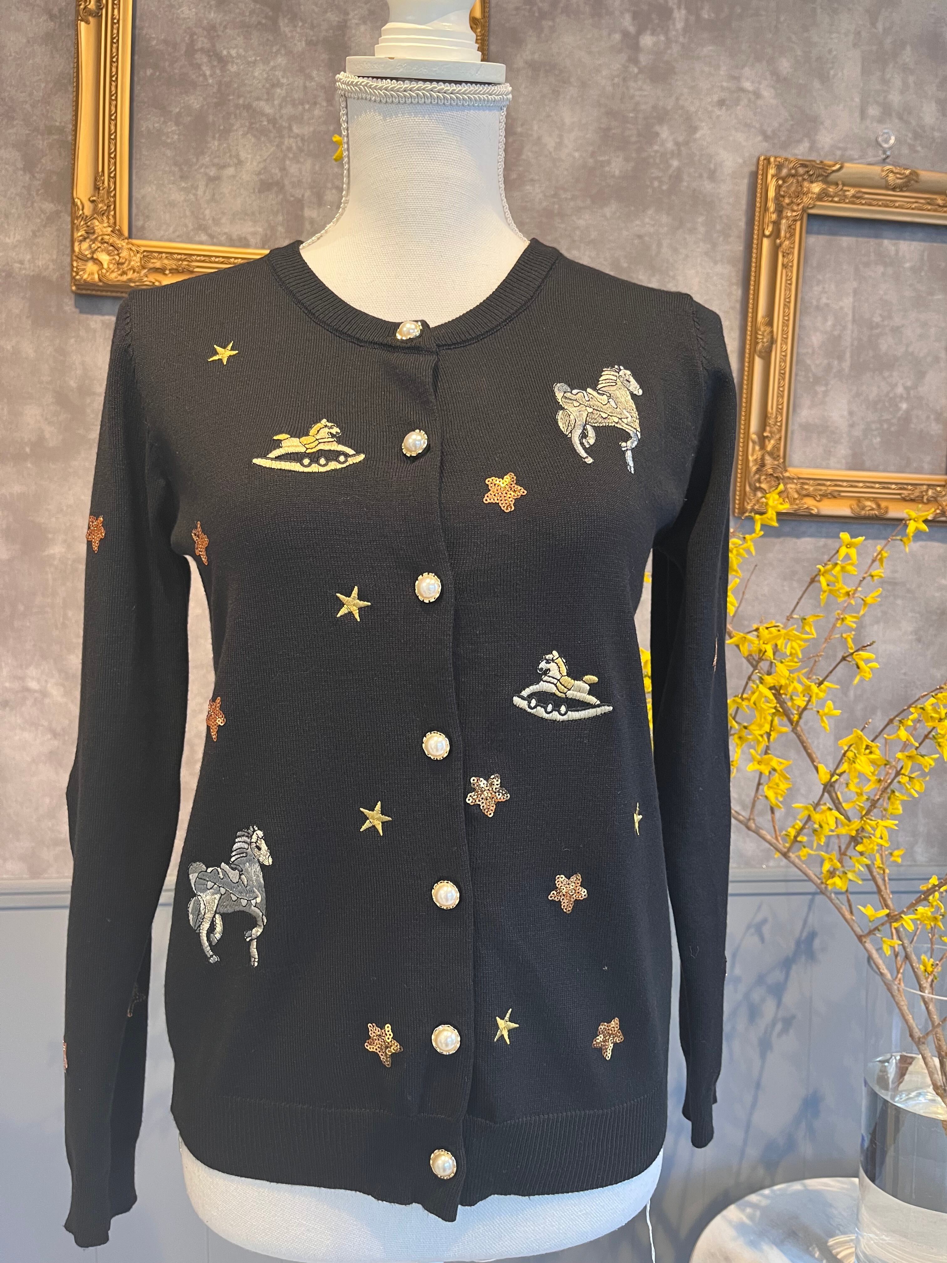 ユニコーン刺繍と星の刺繍、星のスパンコールをあしらったユニークなカーディガン。