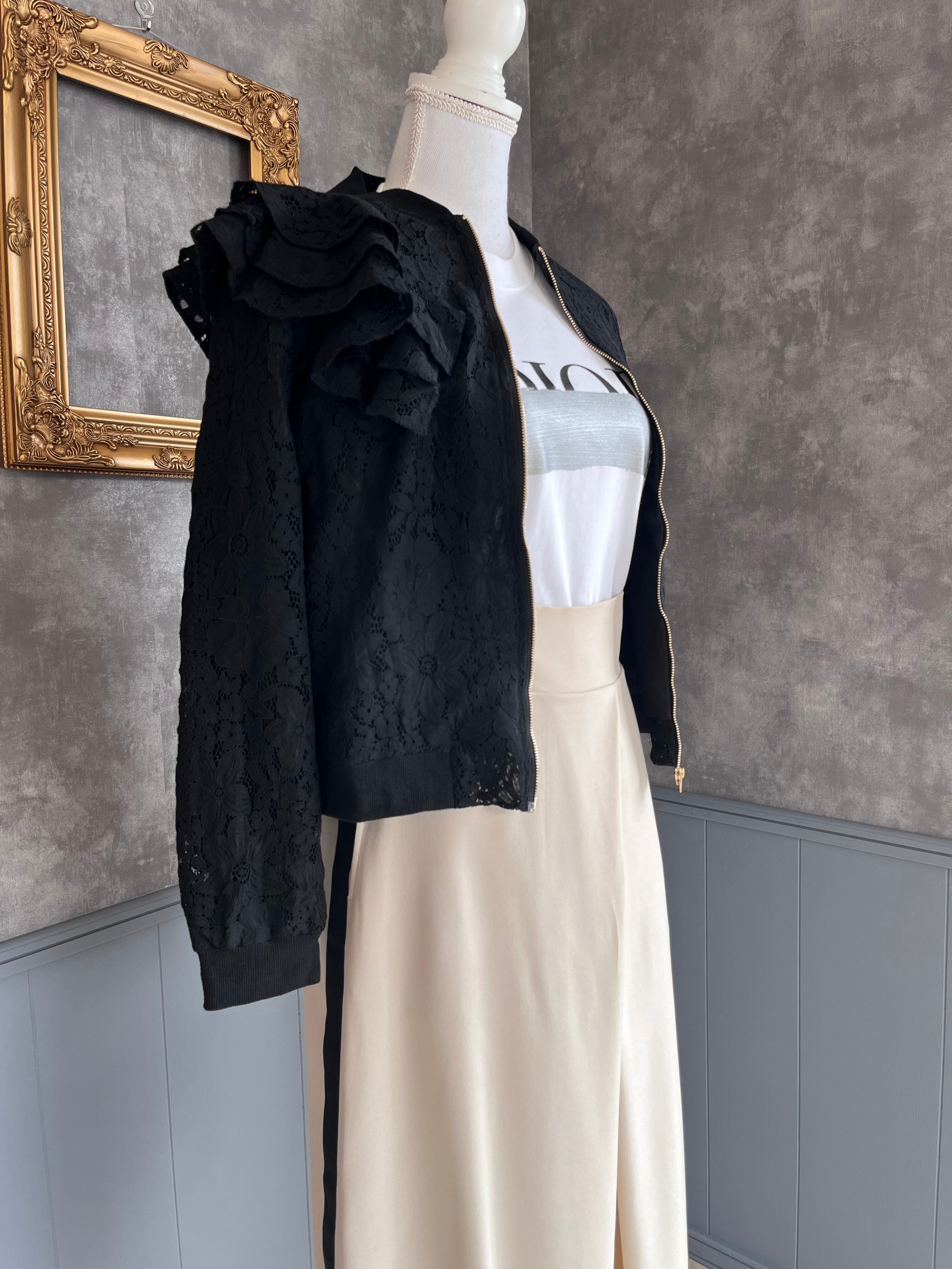 アシンメトリーレースブルゾン ブラック