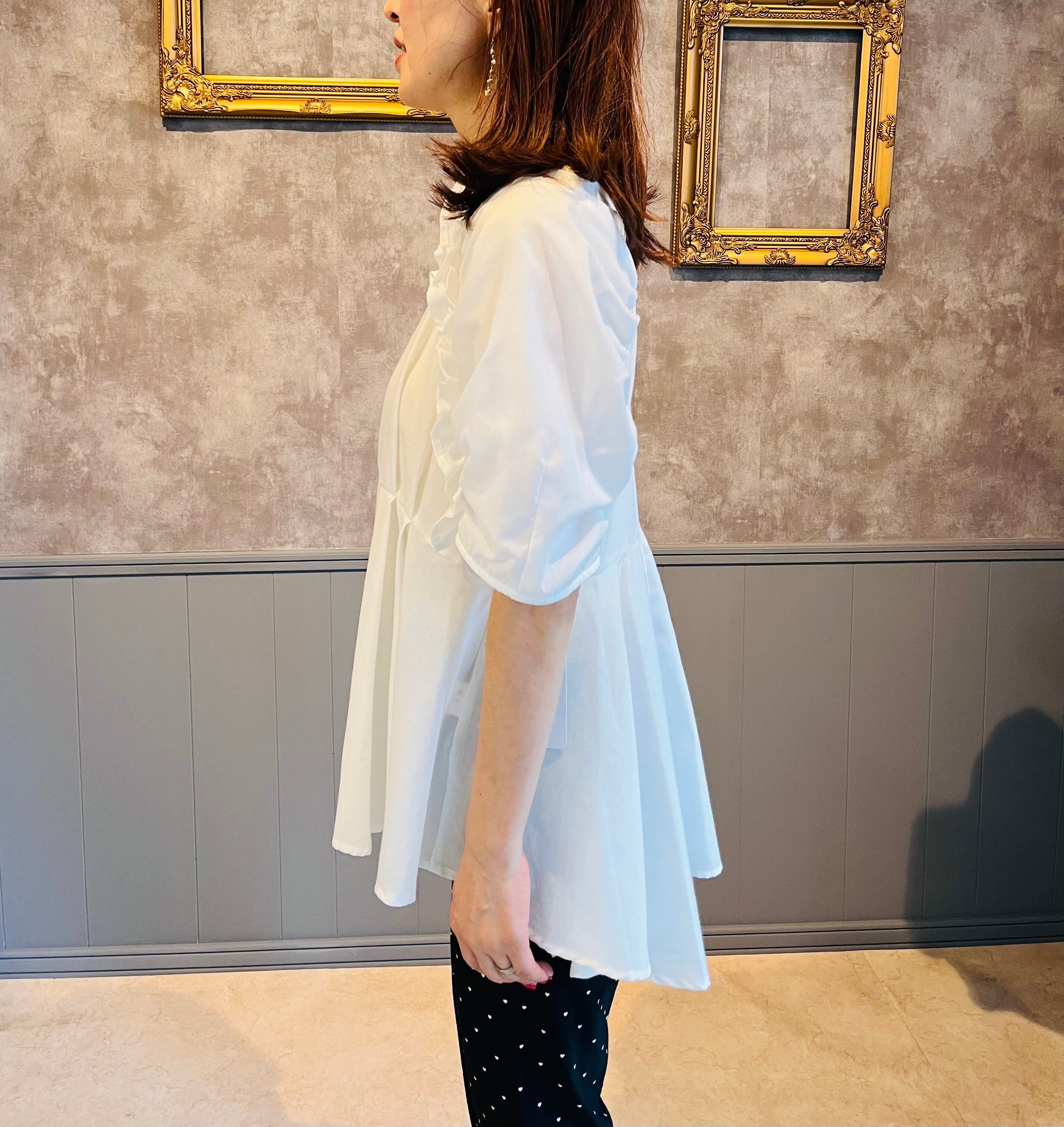 清涼感のあるさらりとしたライトオックス生地のペプラムブラウス