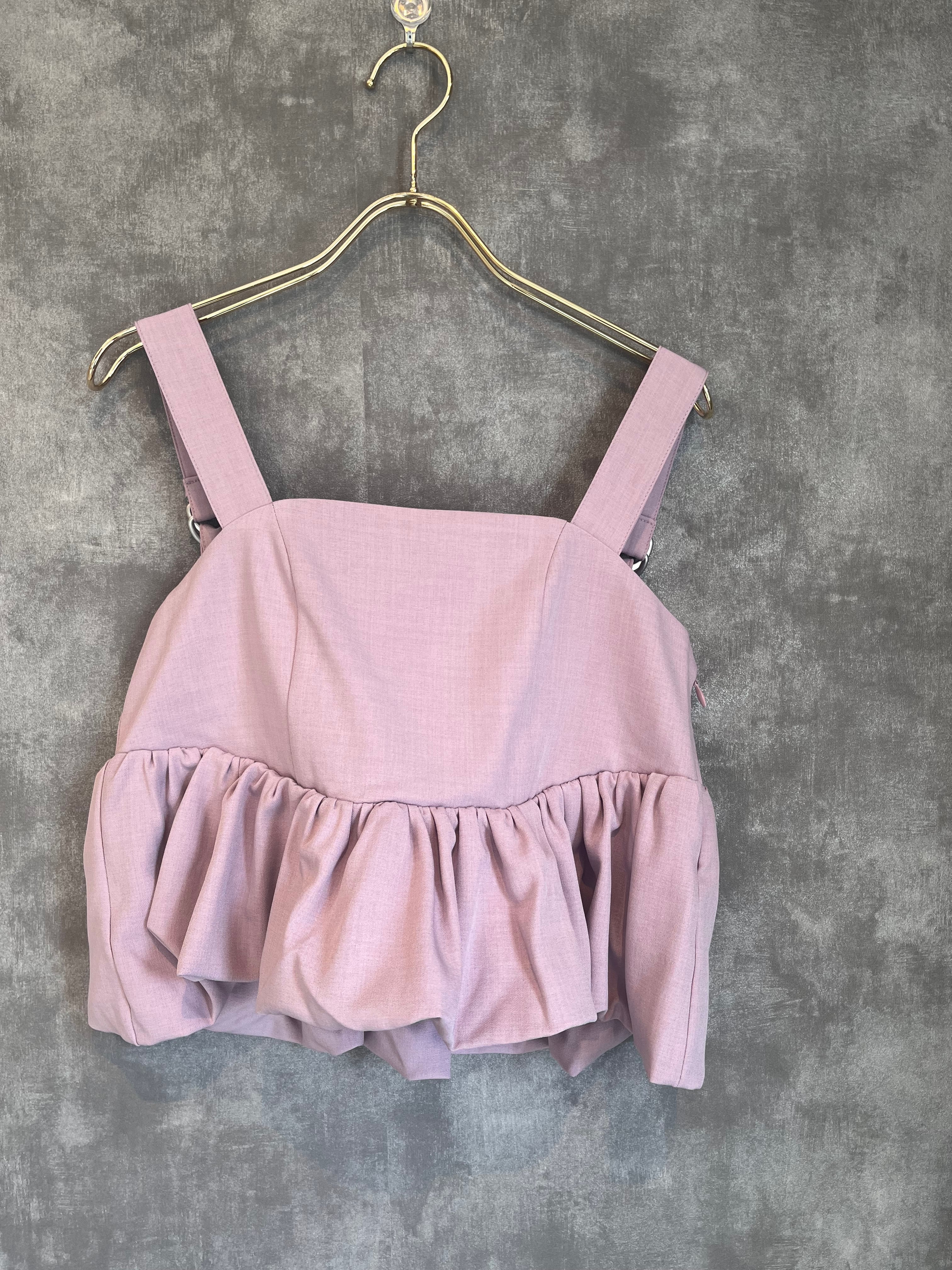 ふんわりディティールの幅広い着回し可能なビスチェです。肩ひもは長さ調節が可能◎ バックはゴム仕様、サイドにはファスナーがあるので簡単に着用頂けます。