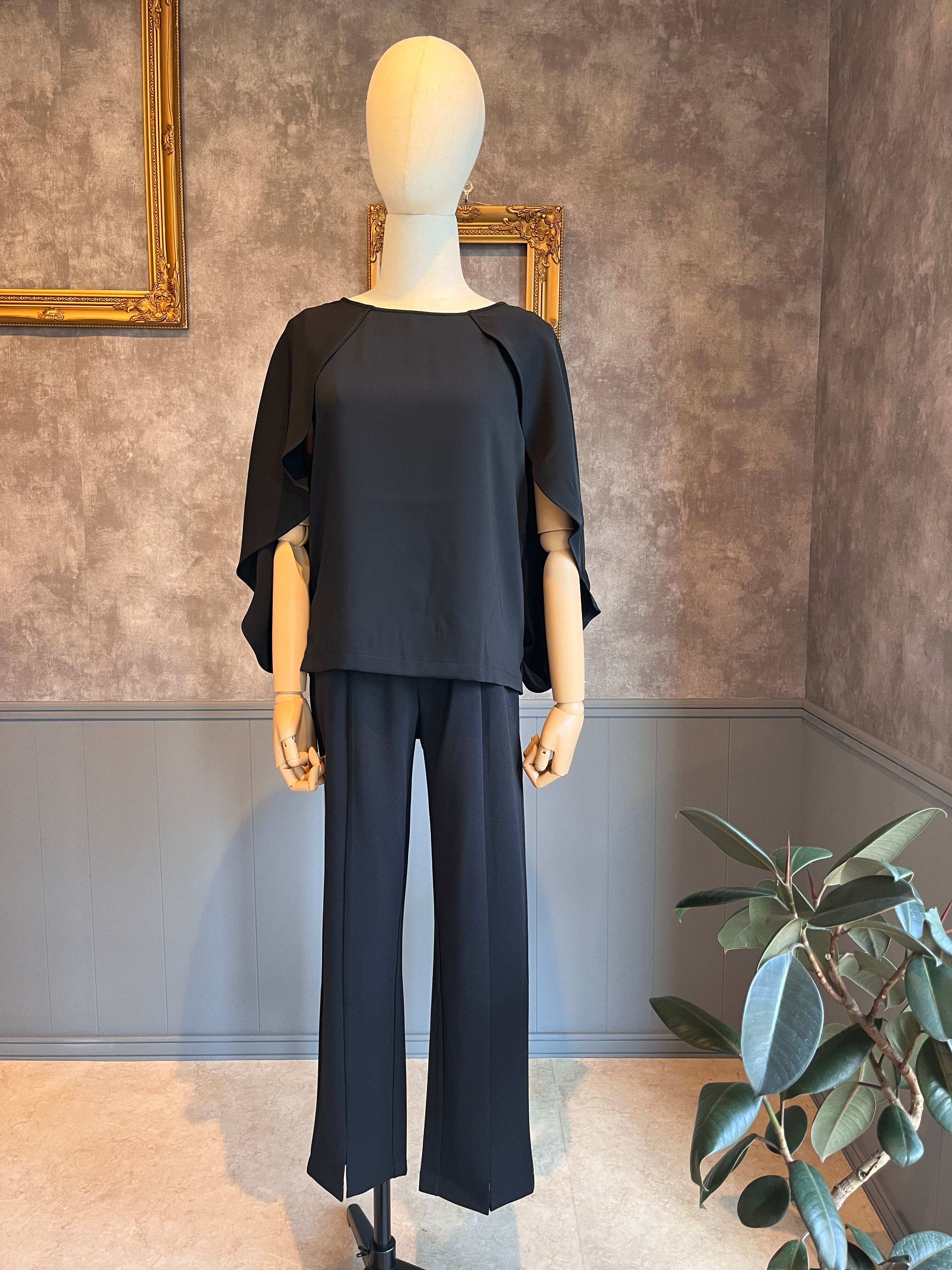 フレアスリーブに深めのスリットを入れ、動きのあるデザインです。