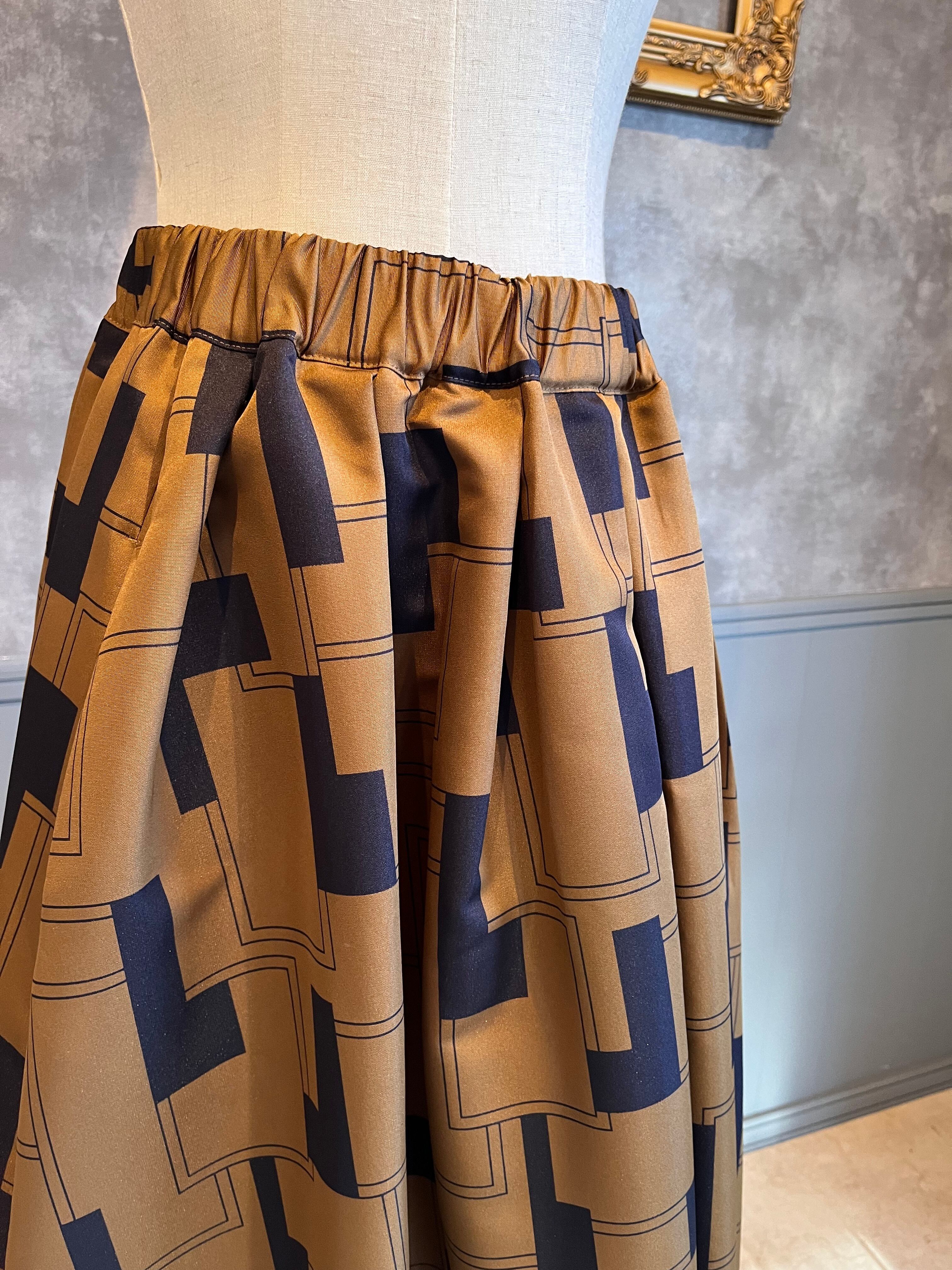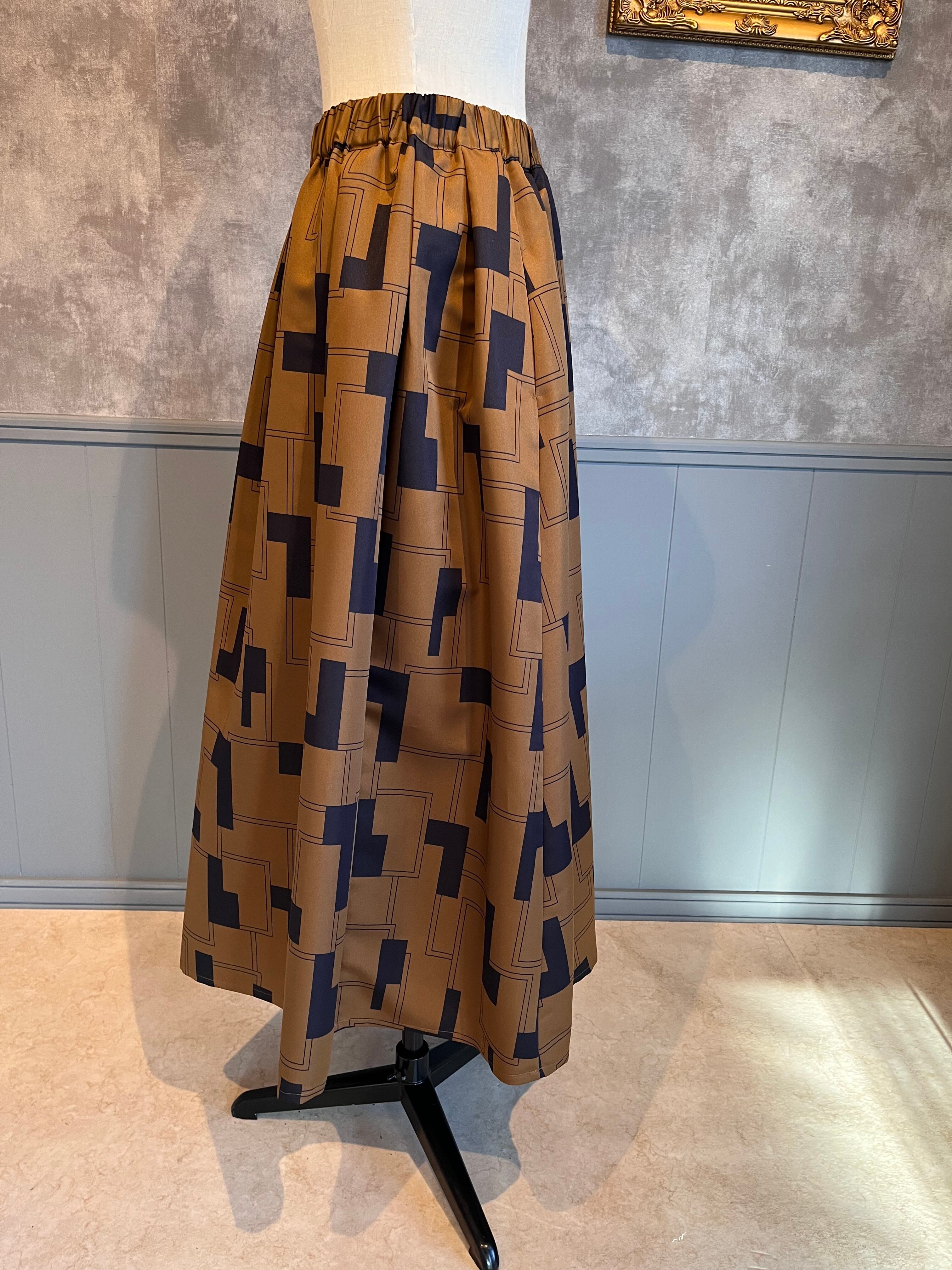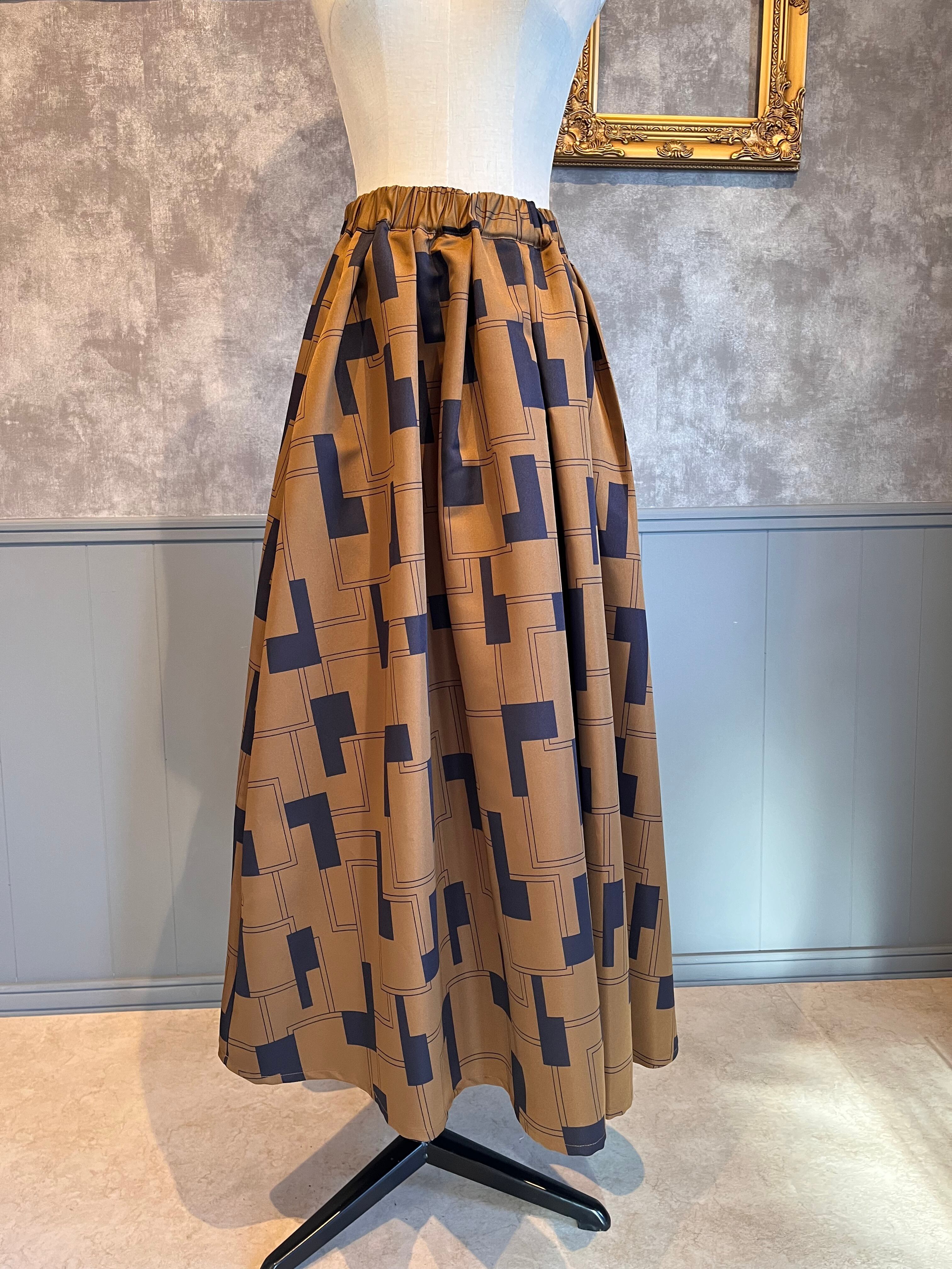 幾何学柄 タックスカート ブラウン
