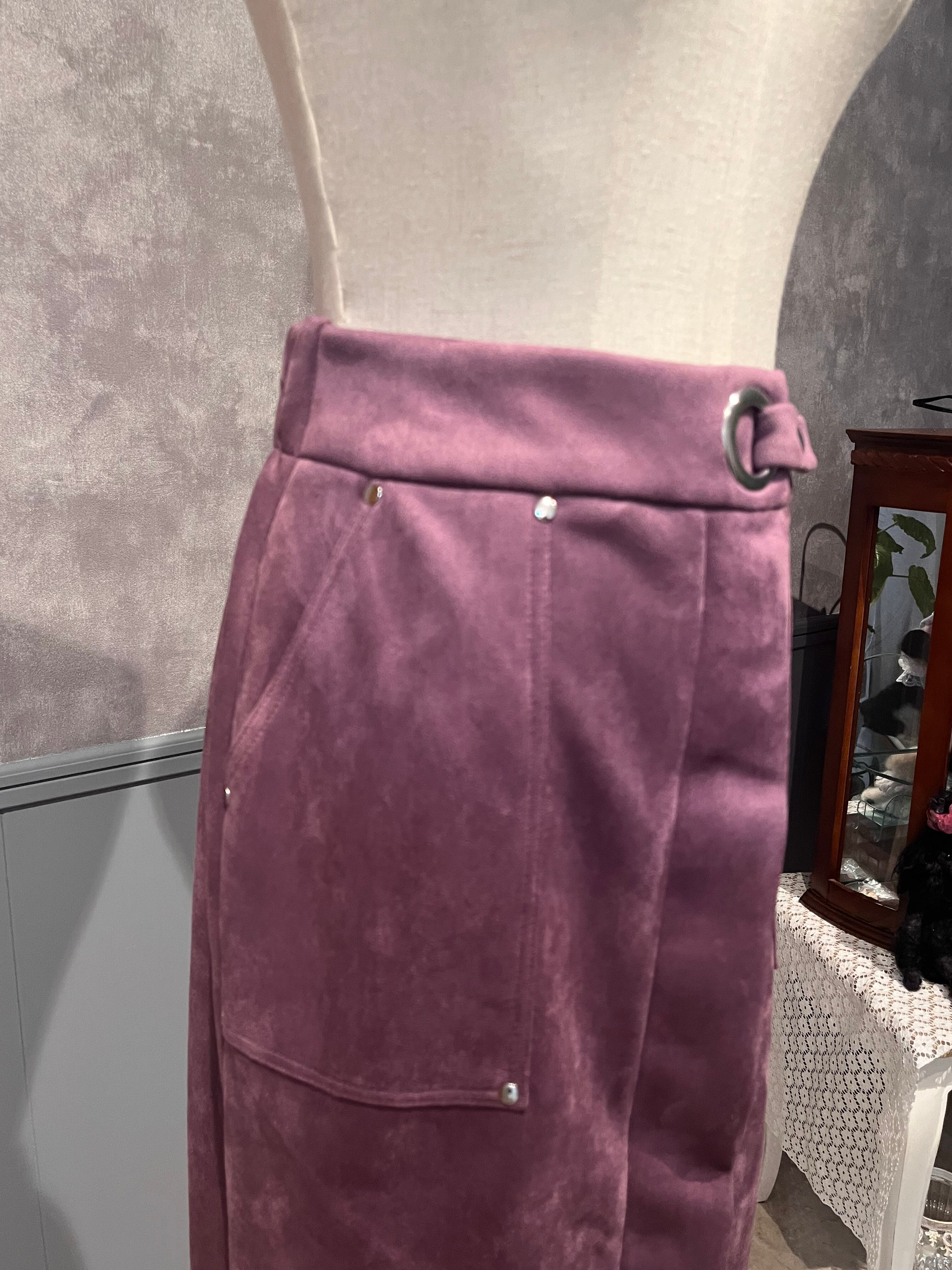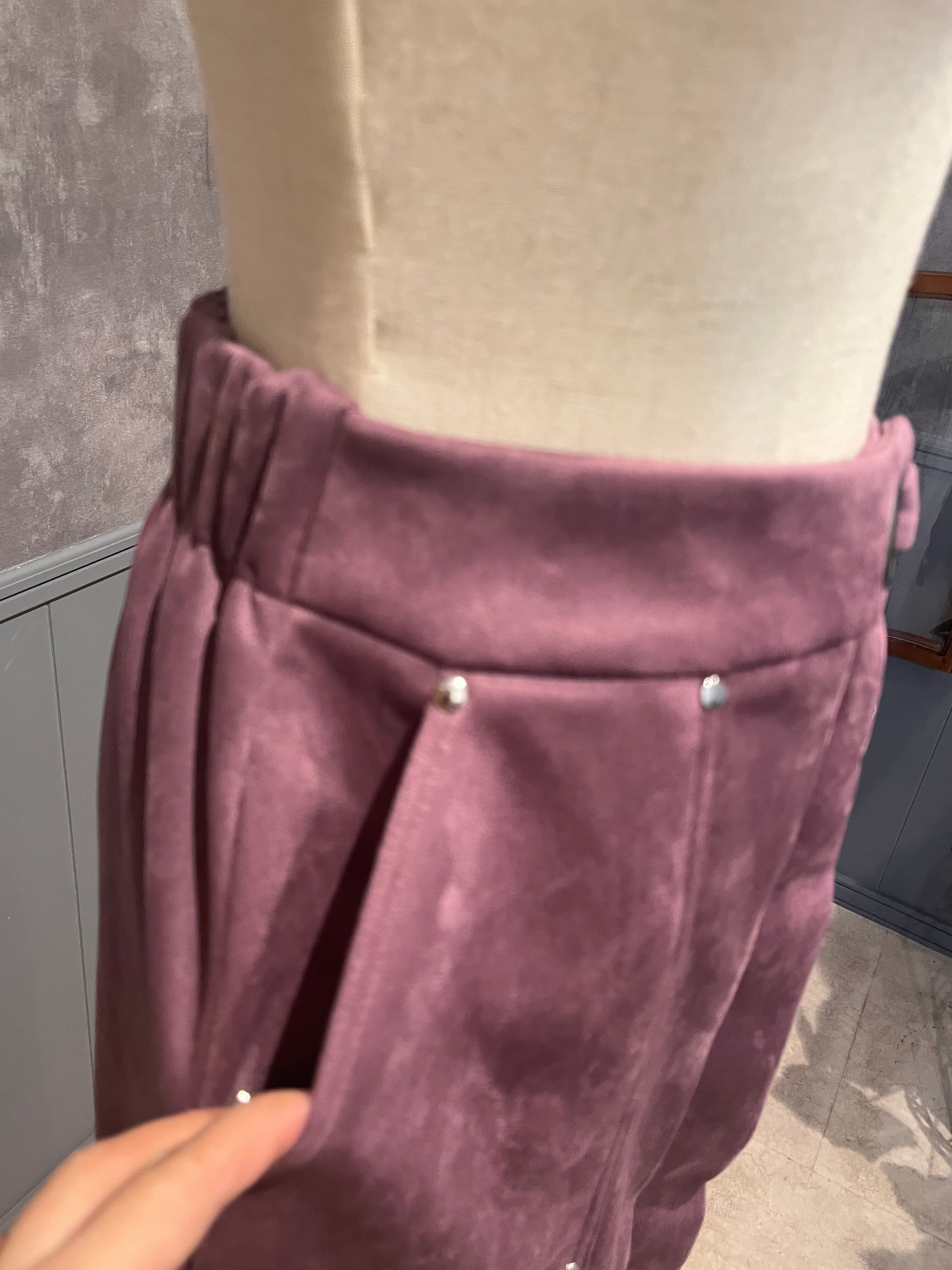 ウエストベルトがと、ポケット部分にスタッズのついたデザイン性の高いスカートです。