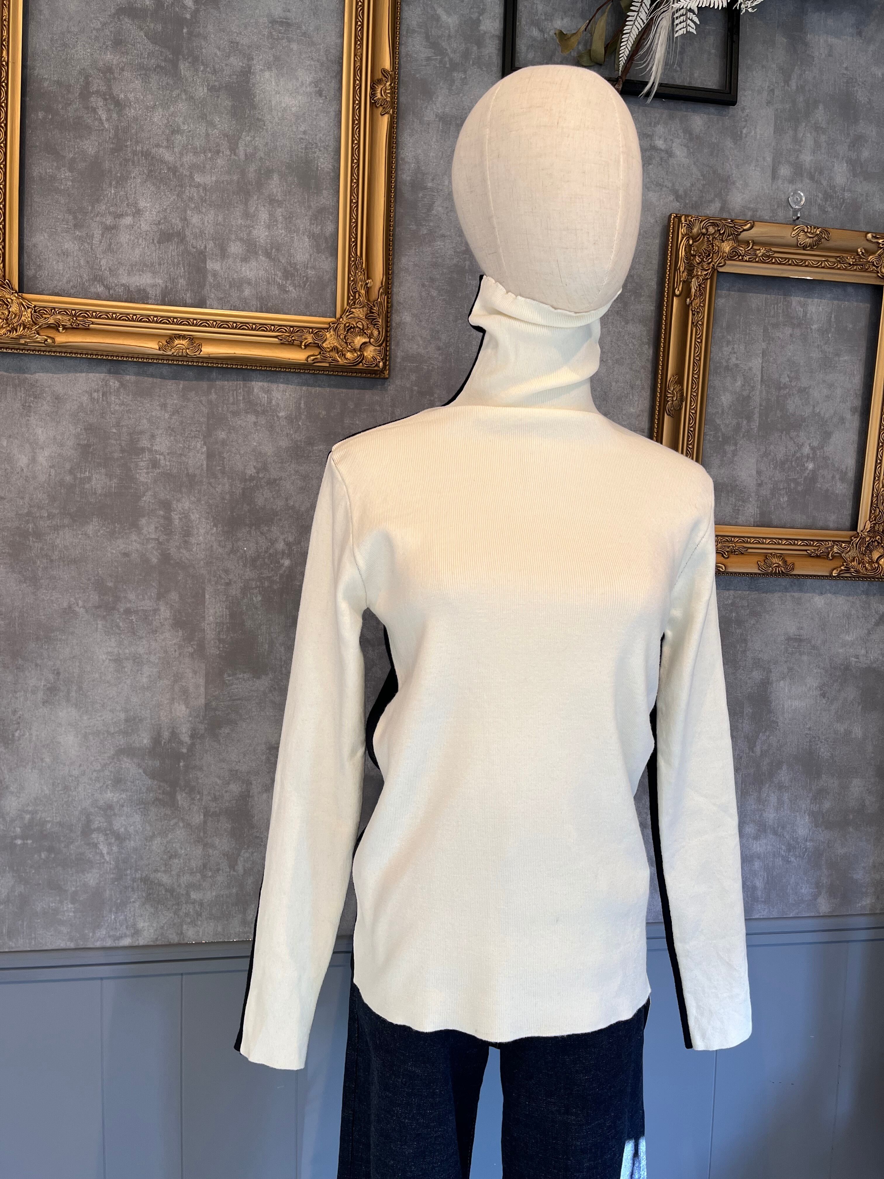 人気のある黒白バイカラータートルネックニットが登場しました!