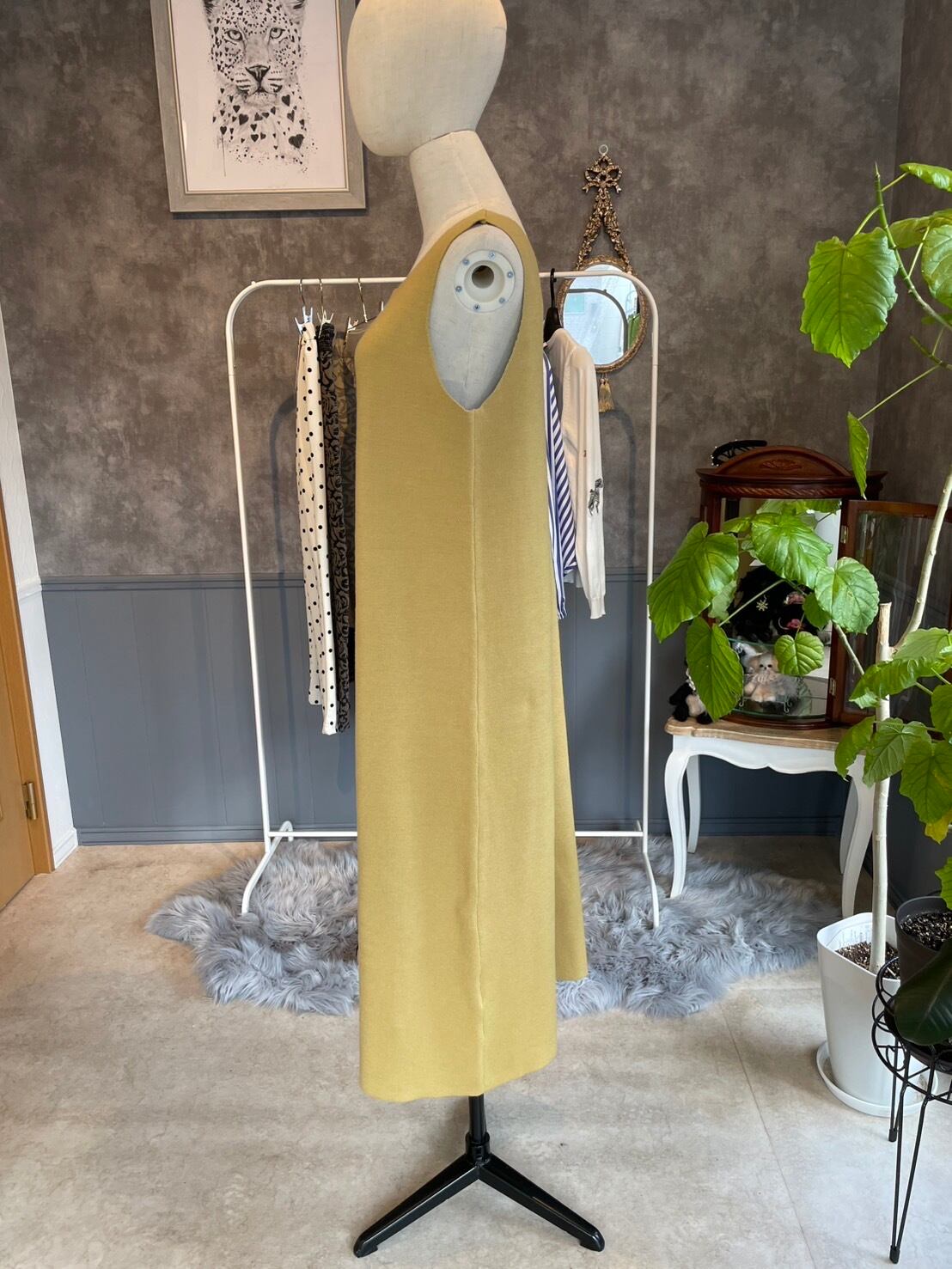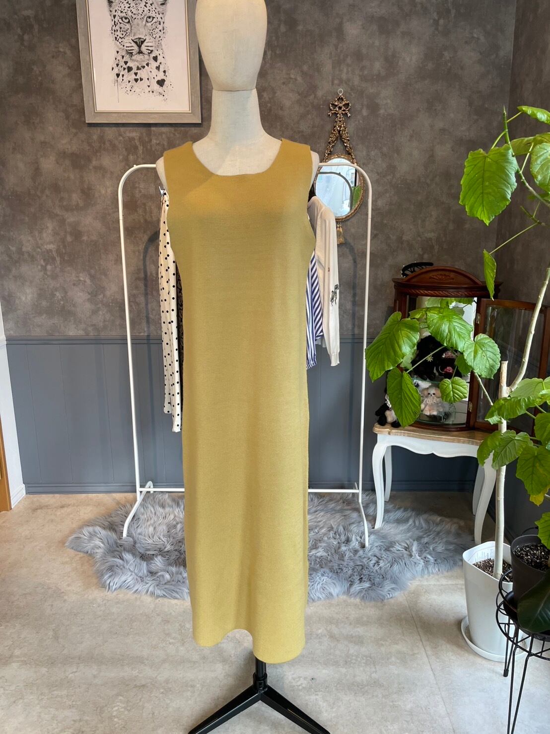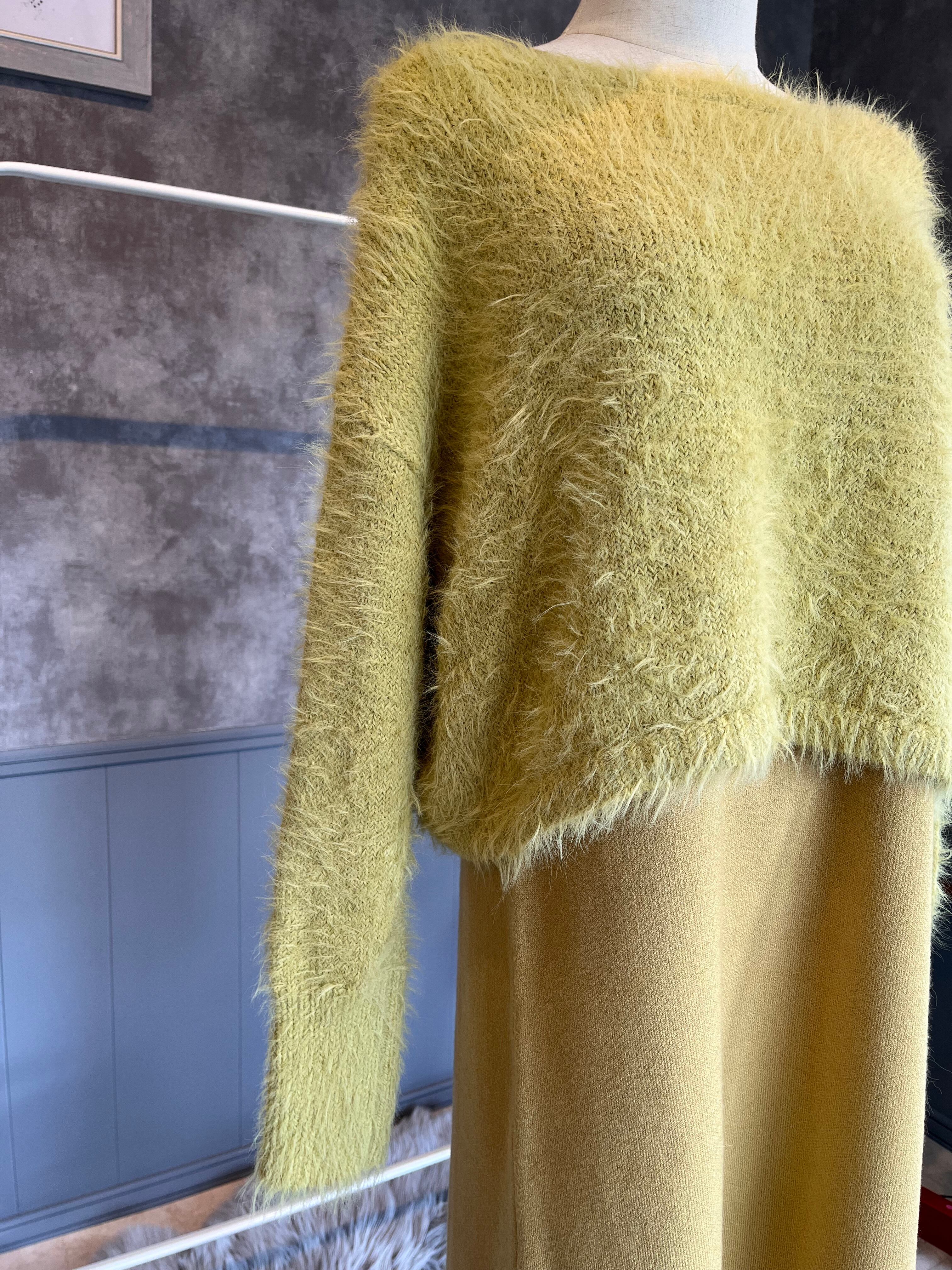 シャギートップスセット ニットワンピース イエロー