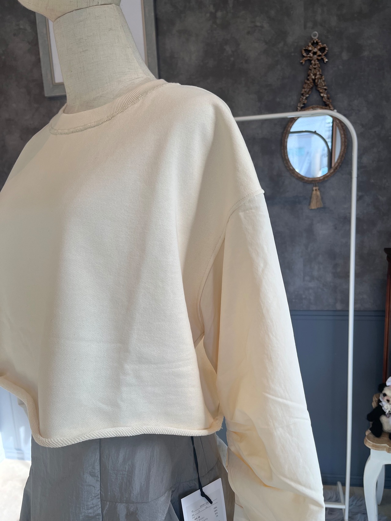 ・裾の切りっぱなしとクロップド丈がカジュアルな抜け感をプラス。