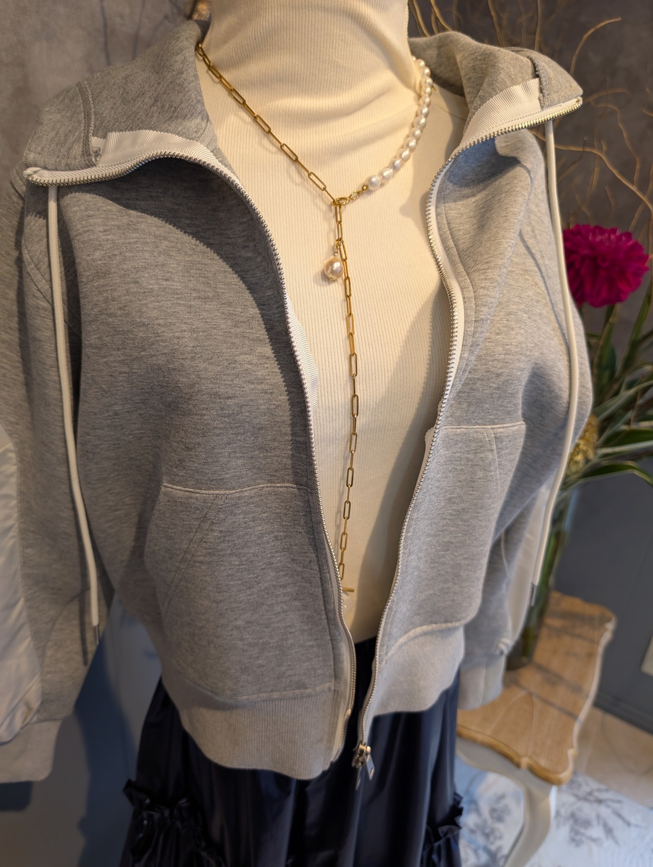 ・季節の変わり目には、軽アウターとしても活躍する versatile なアイテムです。