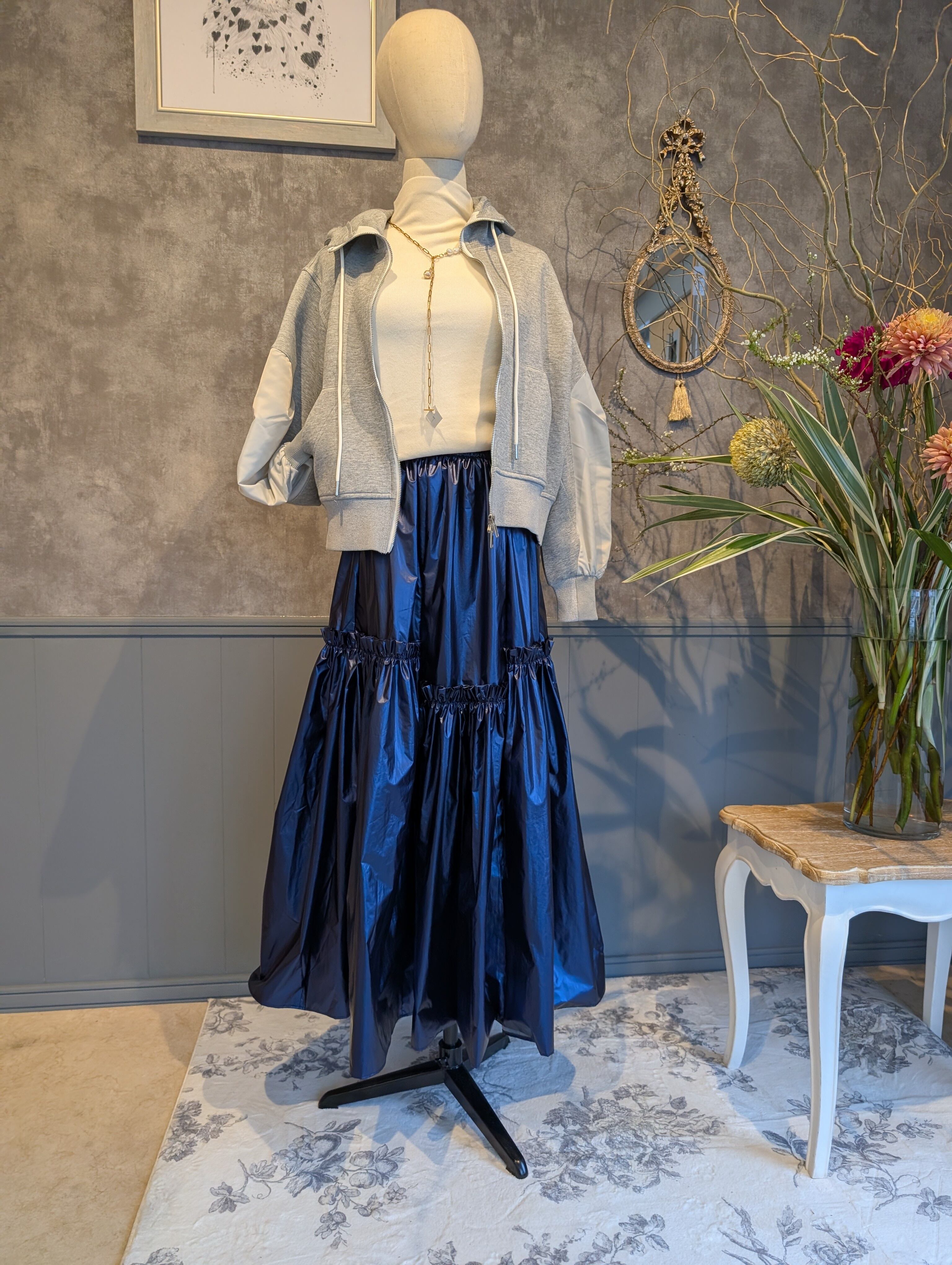 ・細身のパンツやスカートと組み合わせることで、上品な印象を引き立てます。