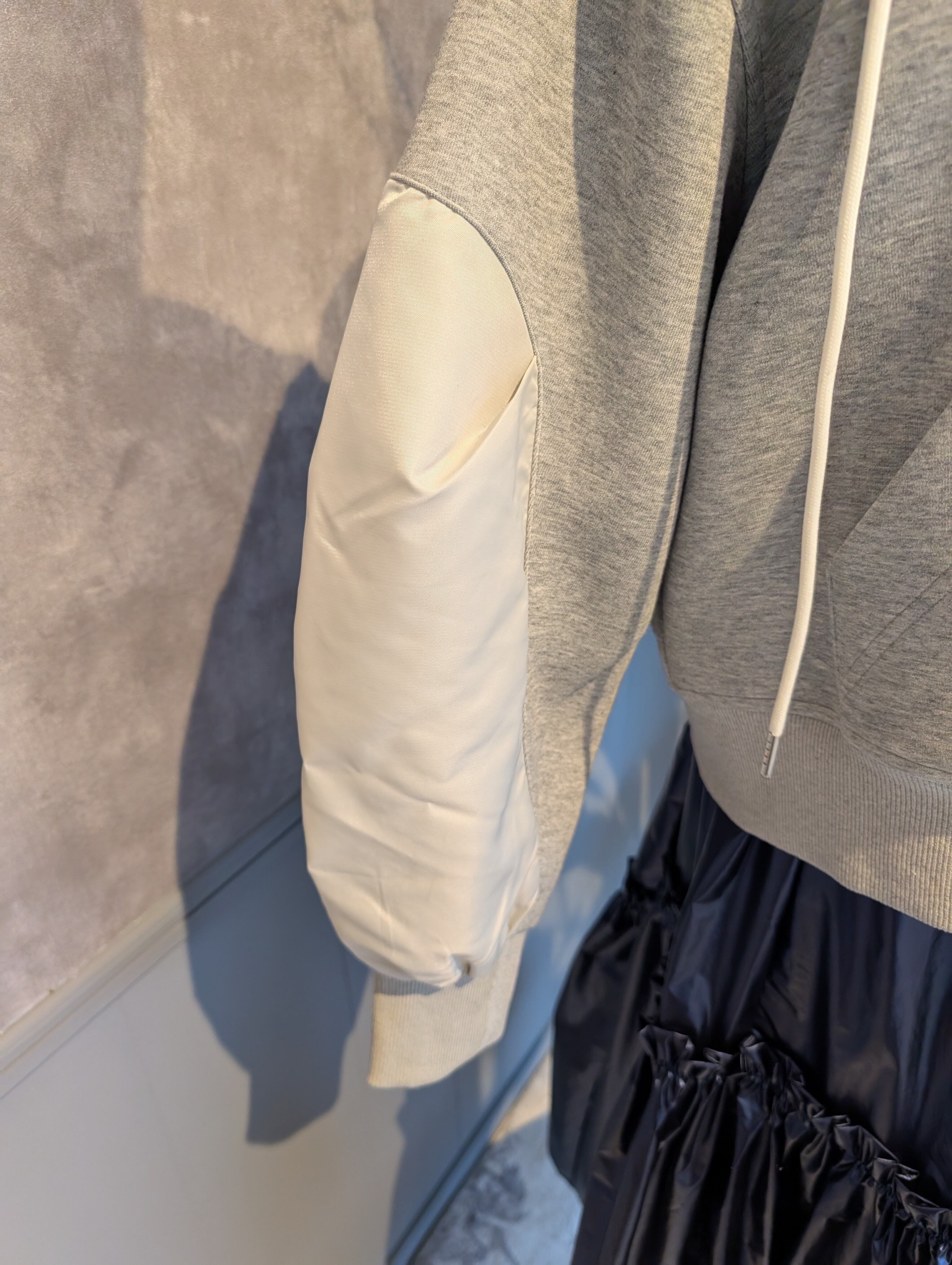 ・ナイロン切り替えの袖が特徴的で、動きやすさを保ちながらもスタイリッシュなデザインに仕上がっています。