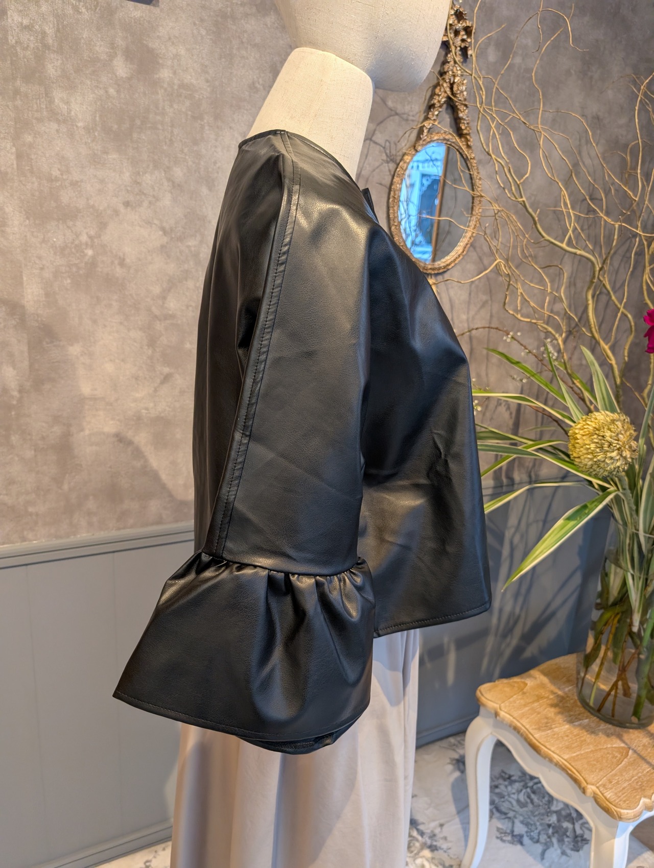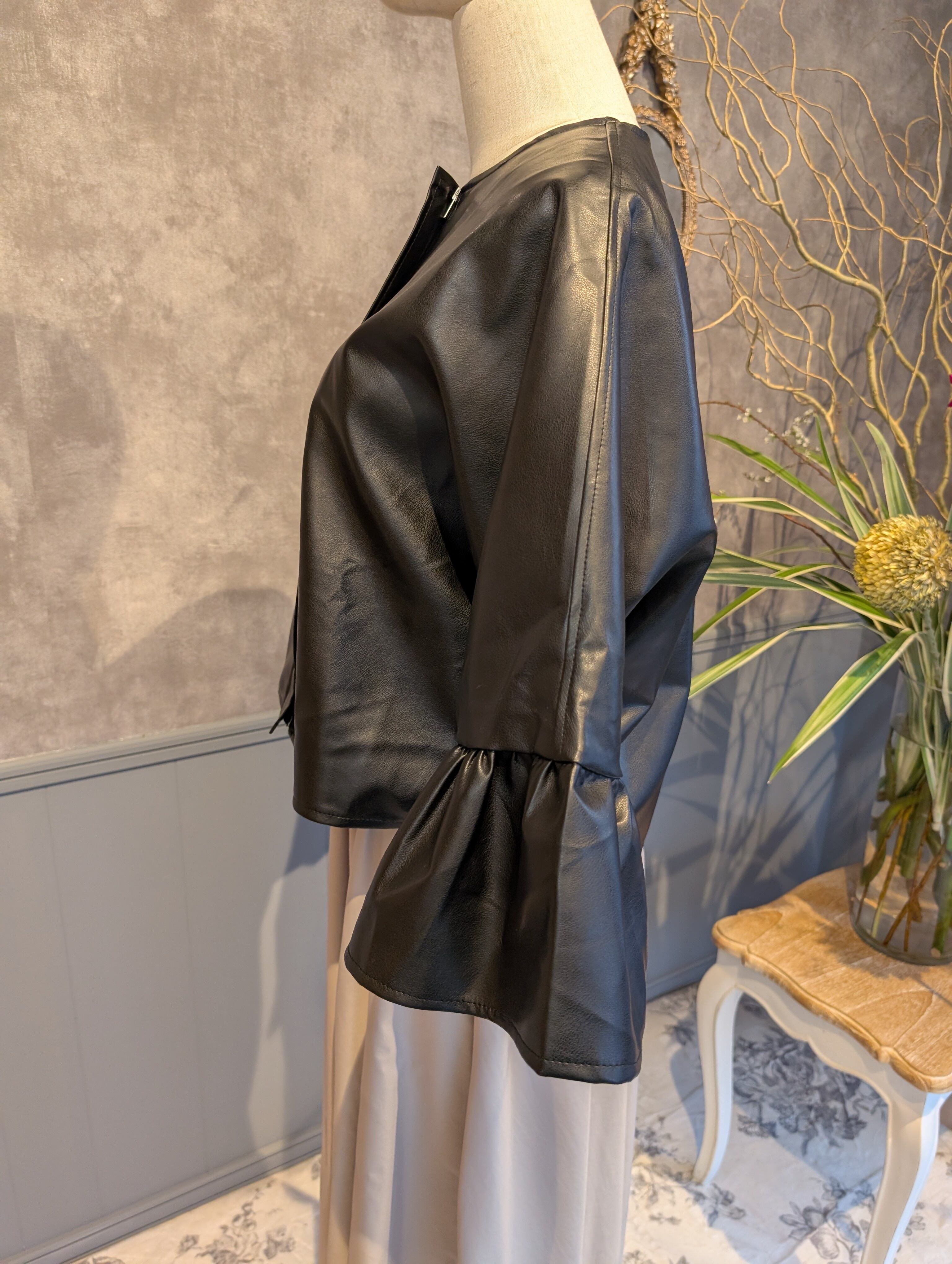 ・エコレザー素材を使用し、柔らかな風合いと軽やかな着心地が魅力のブルゾン。