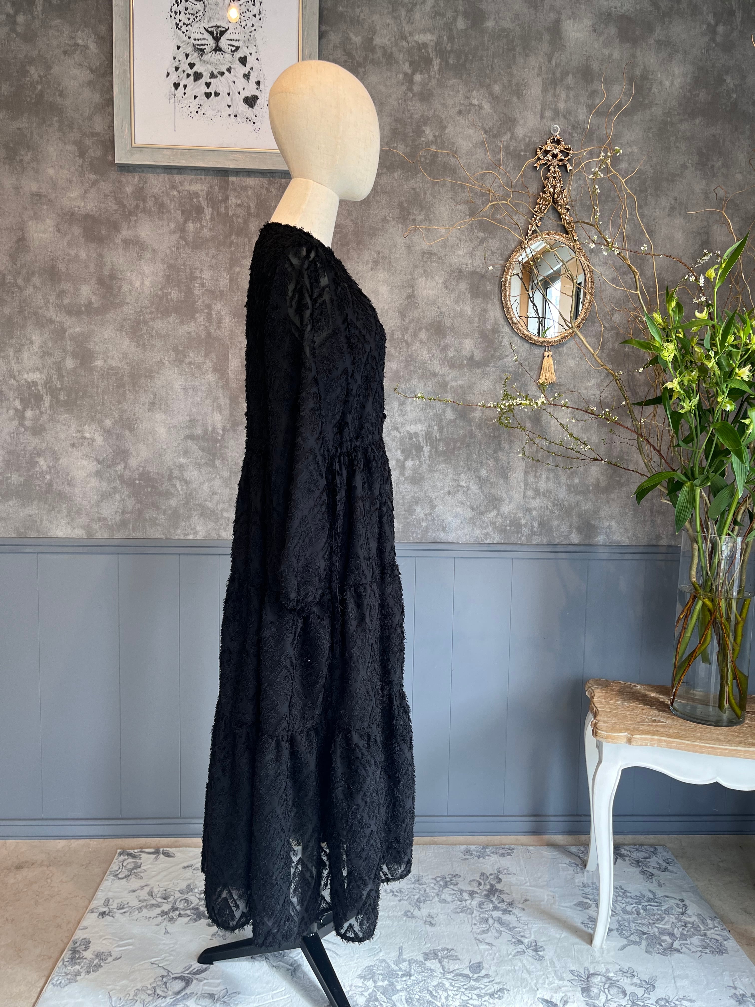 上品なジャガード生地を使用し、独特のテクスチャが魅力のティアードワンピース。