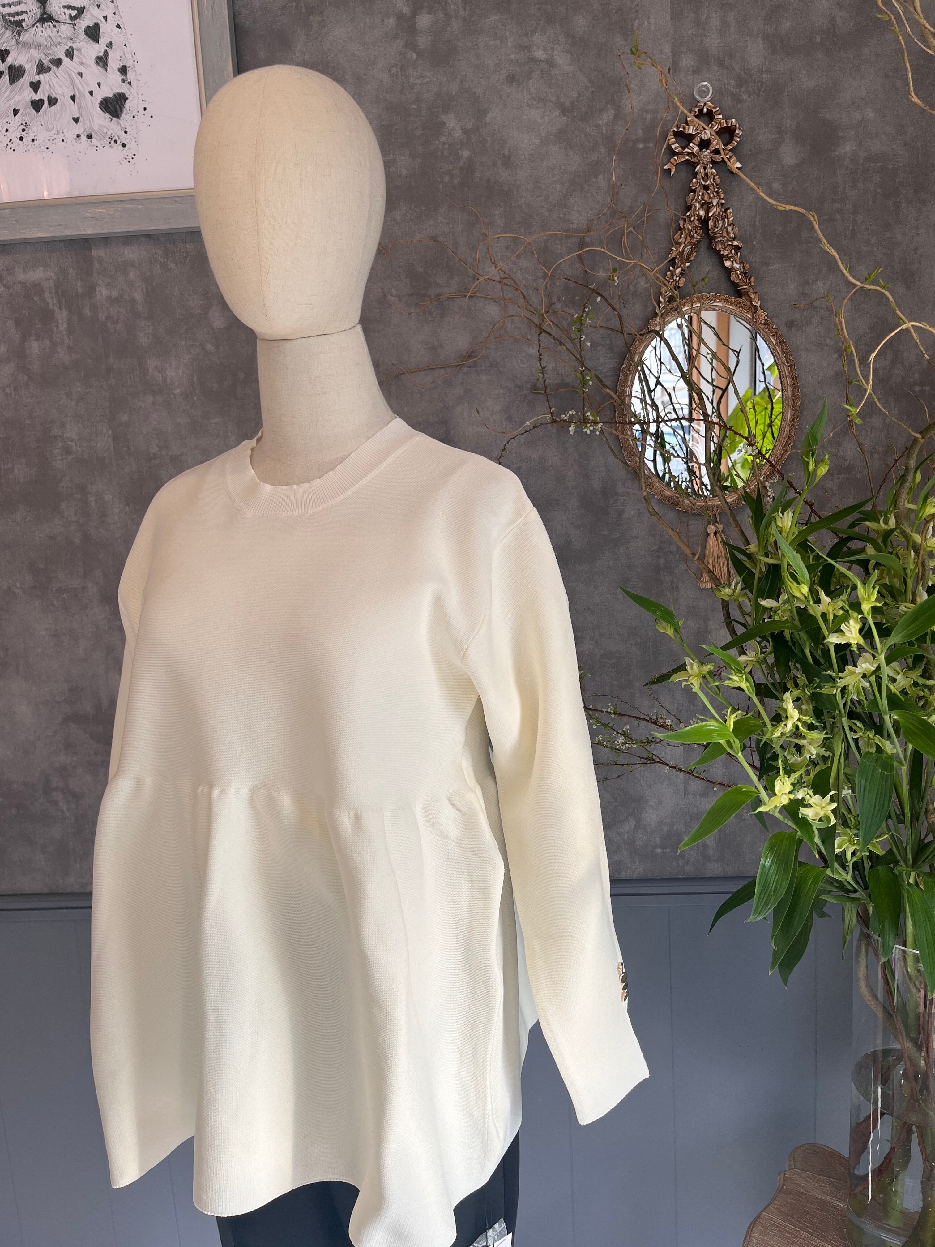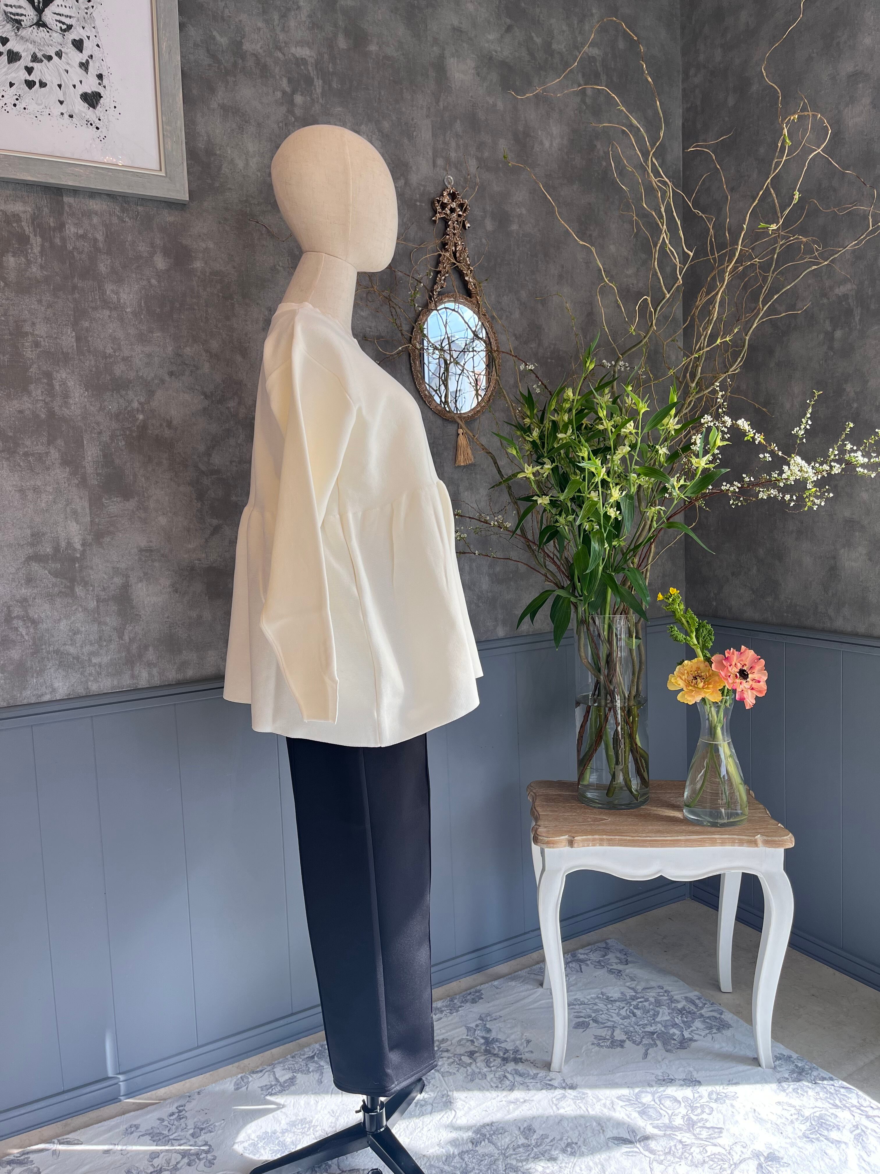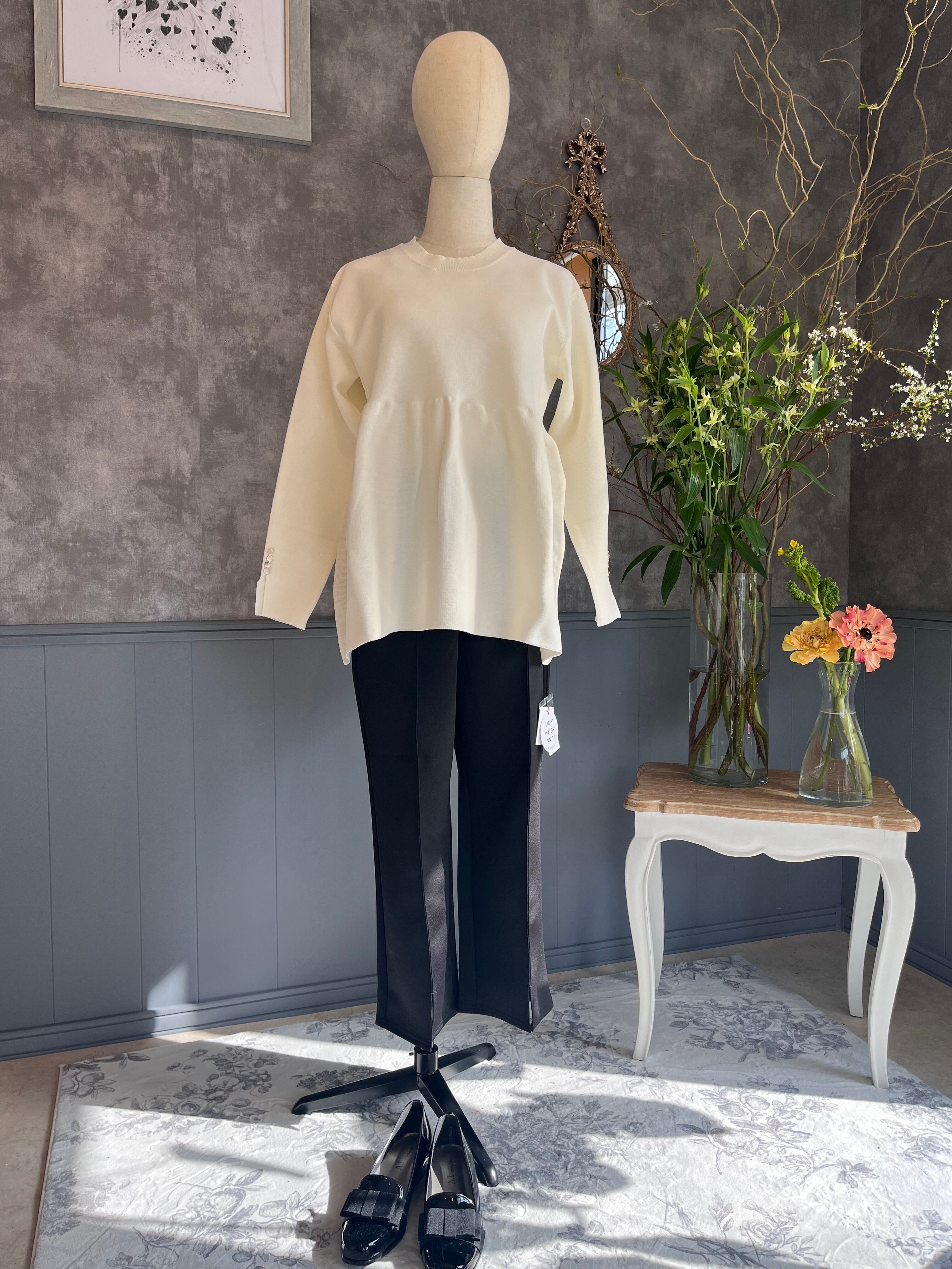 ・薄手で軽量なペプラムニットが、女性らしいラインを演出します。優れたフィット感で、体型を美しく見せてくれるデザインが魅力です。